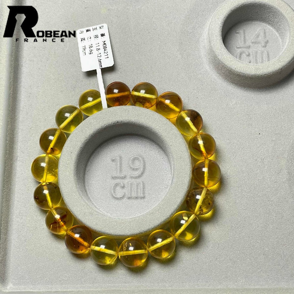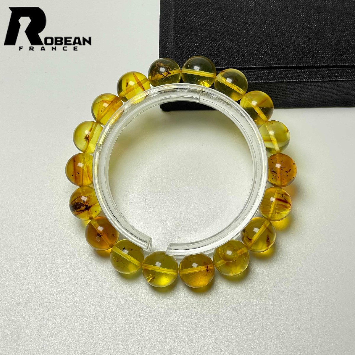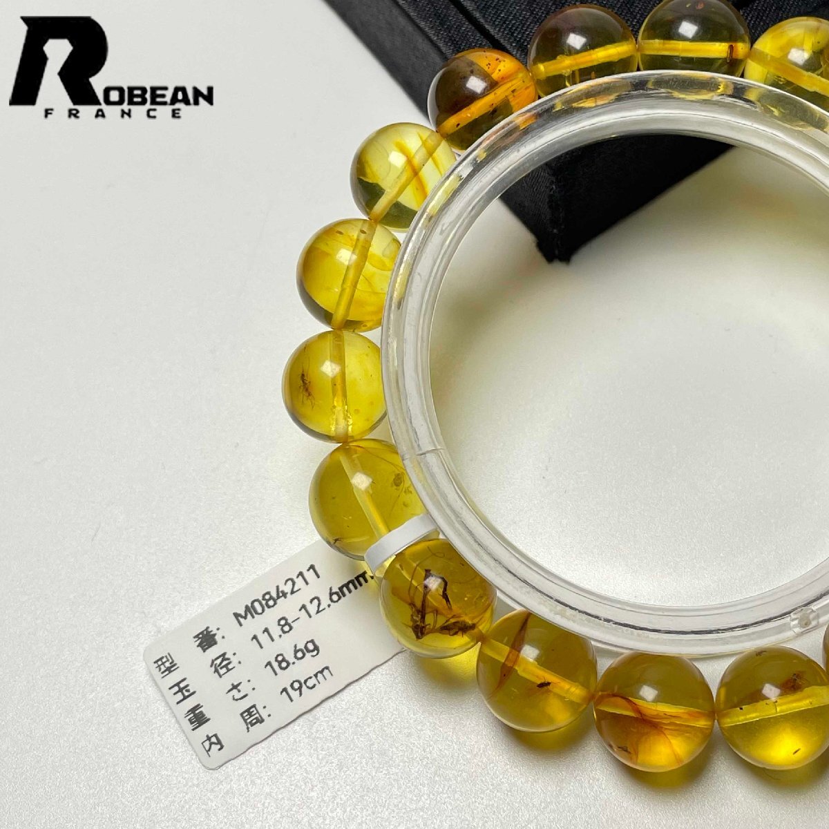 逸品 EU製 定価21万円★ROBEAN・虫入りアンバー・琥珀★ブレスレット パワーストーン 天然石 綺麗 お守り 11.8-12.6mm M084211