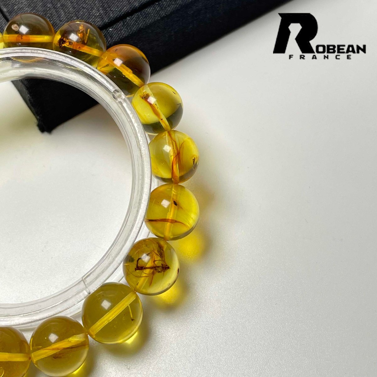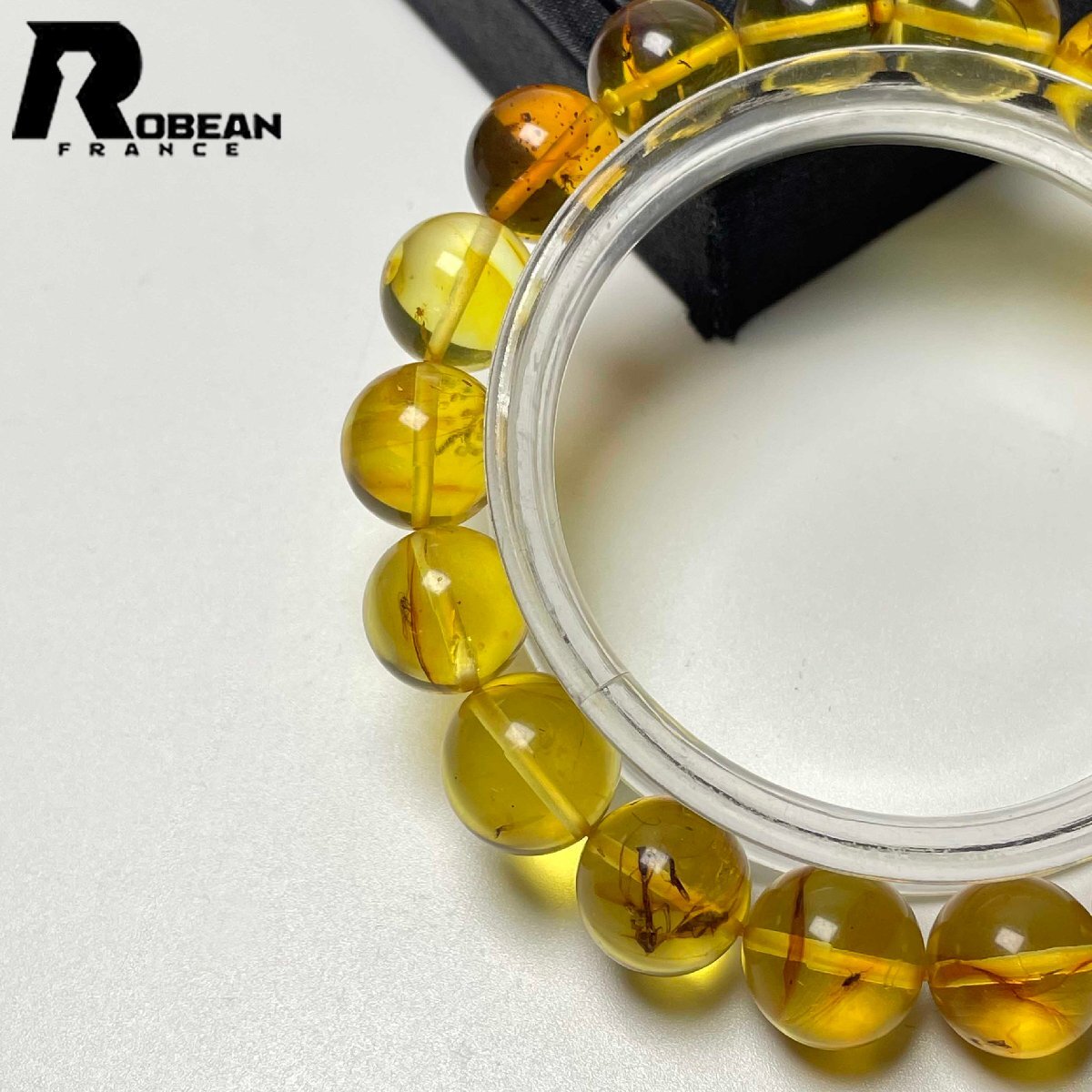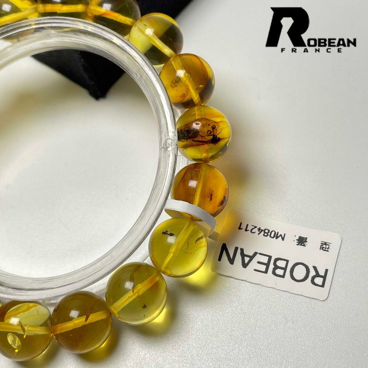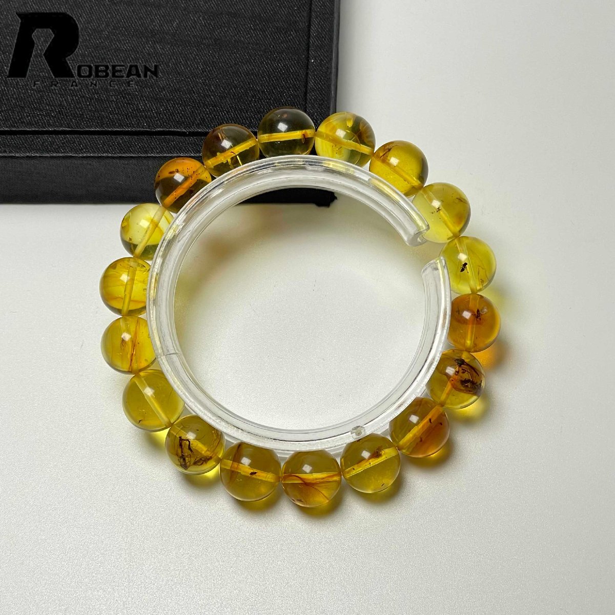 逸品 EU製 定価21万円★ROBEAN・虫入りアンバー・琥珀★ブレスレット パワーストーン 天然石 綺麗 お守り 11.8-12.6mm M084211