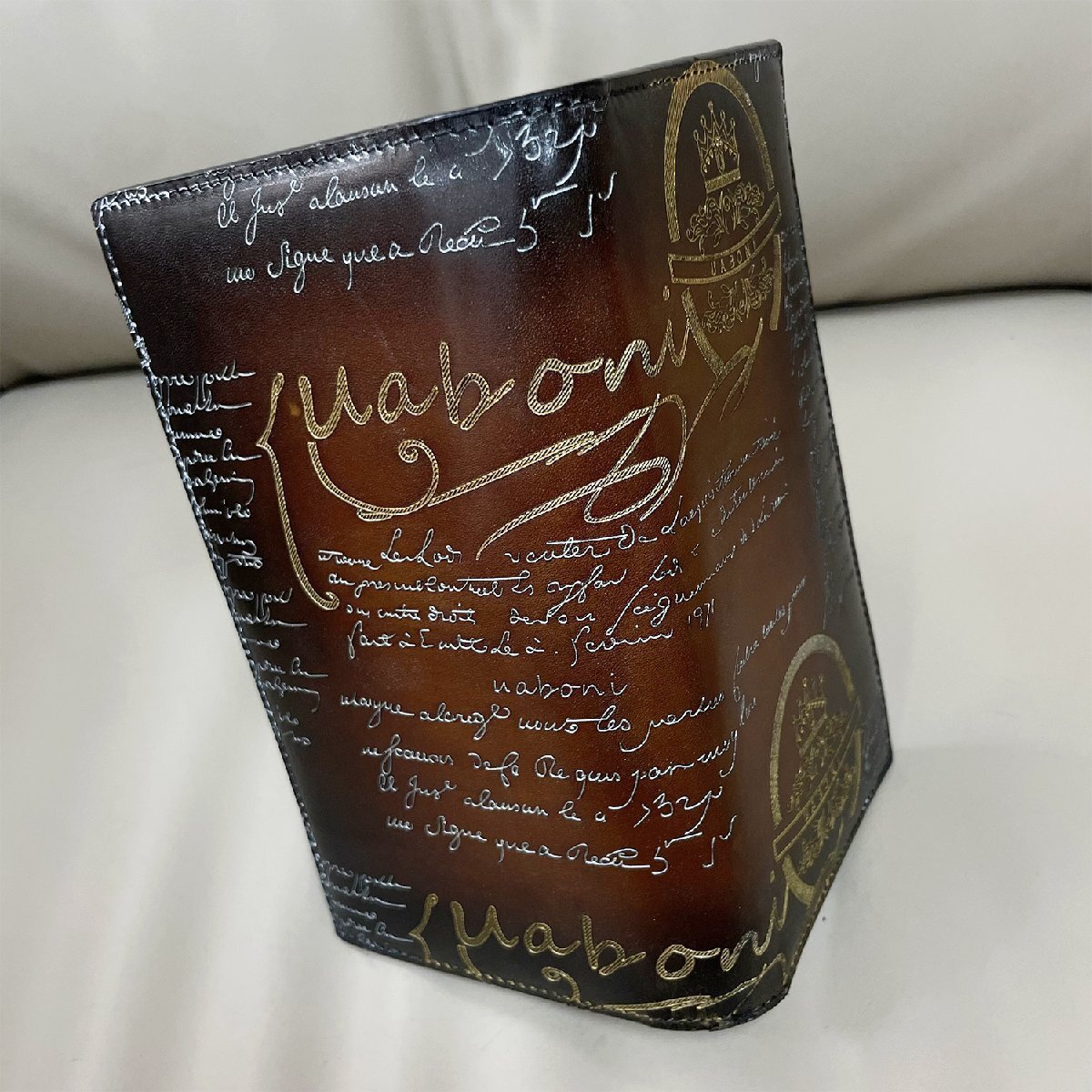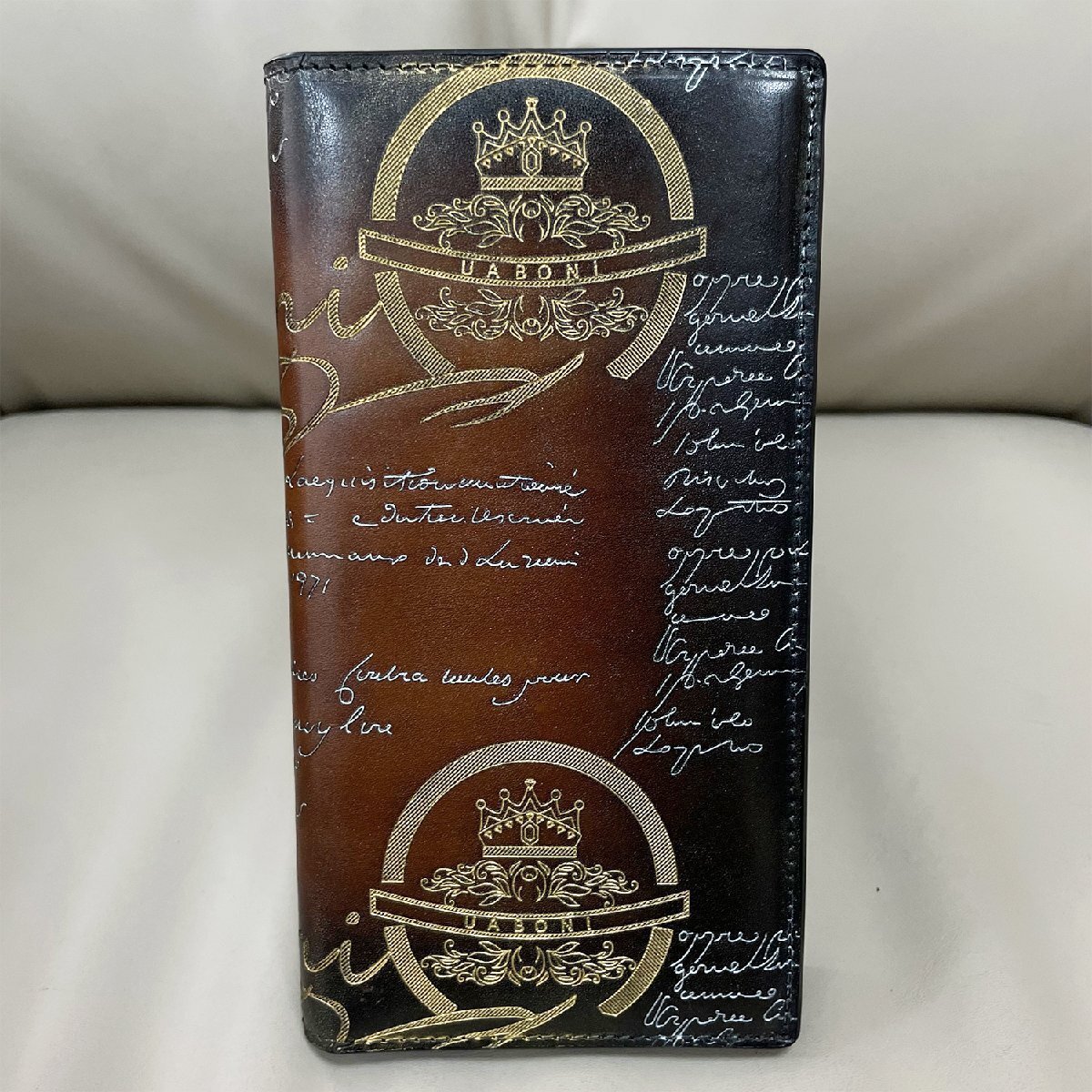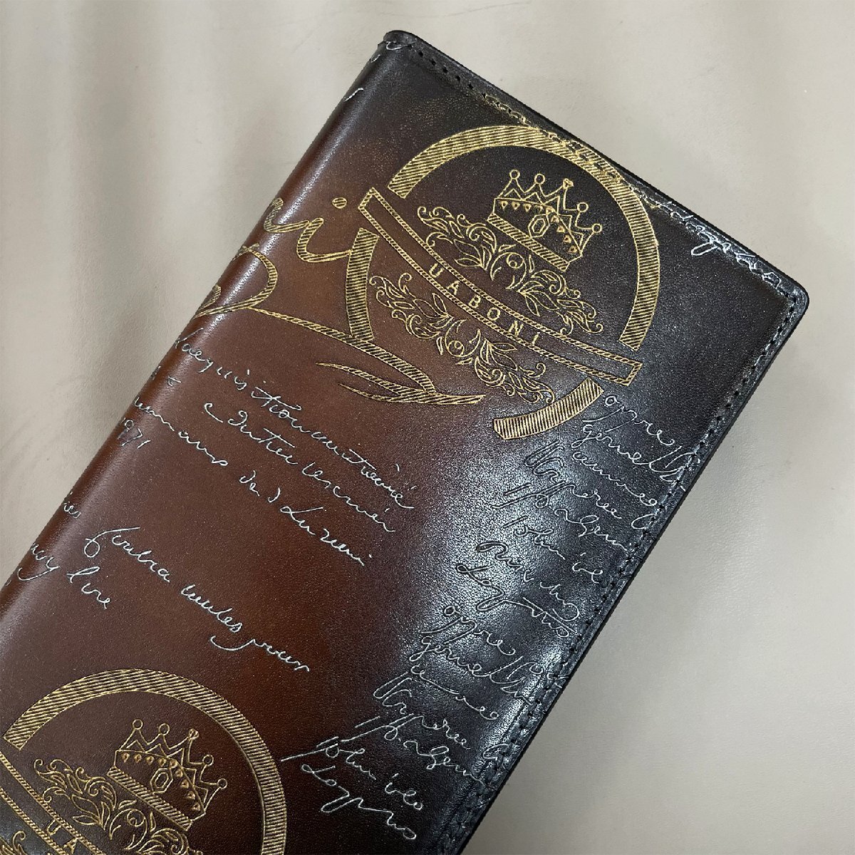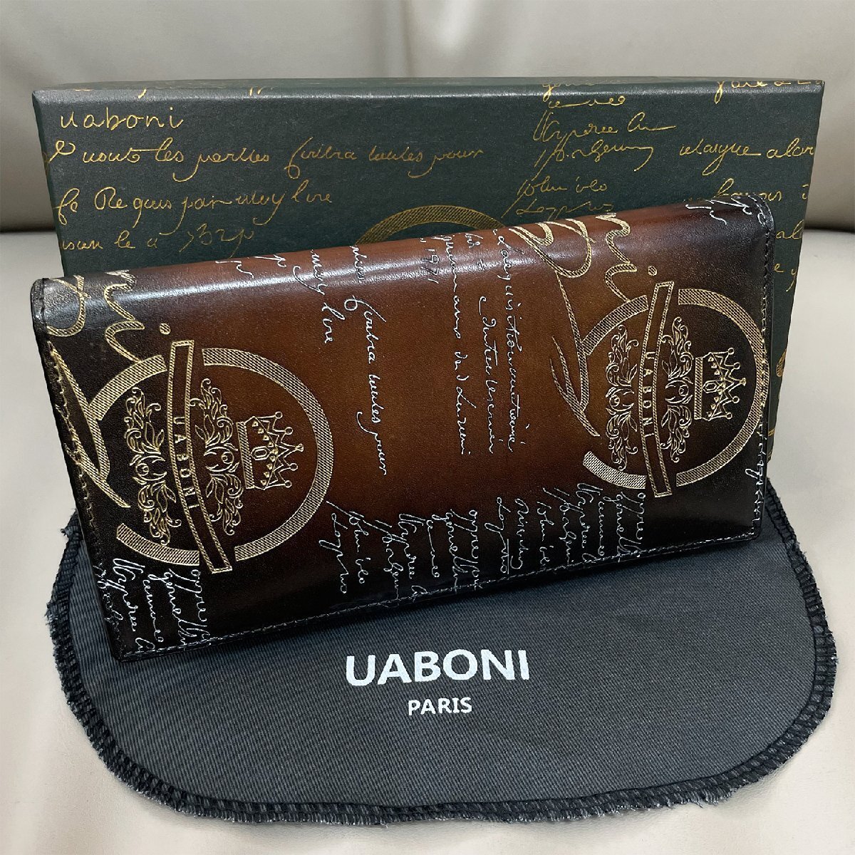 特注限定品*EU製 定価17万◆UABONI幻のパティーヌ*二つ折り 長財布◆上品 カリグラフィー ゴールデン 手染 カーフスキン 牛革 ハンドメイド