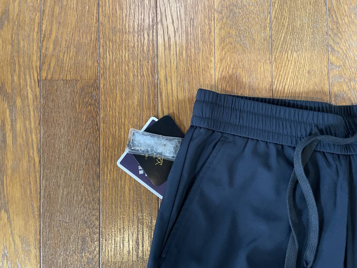 ウエスト部分は、幅広ゴムと内蔵ドローコード絞りです。