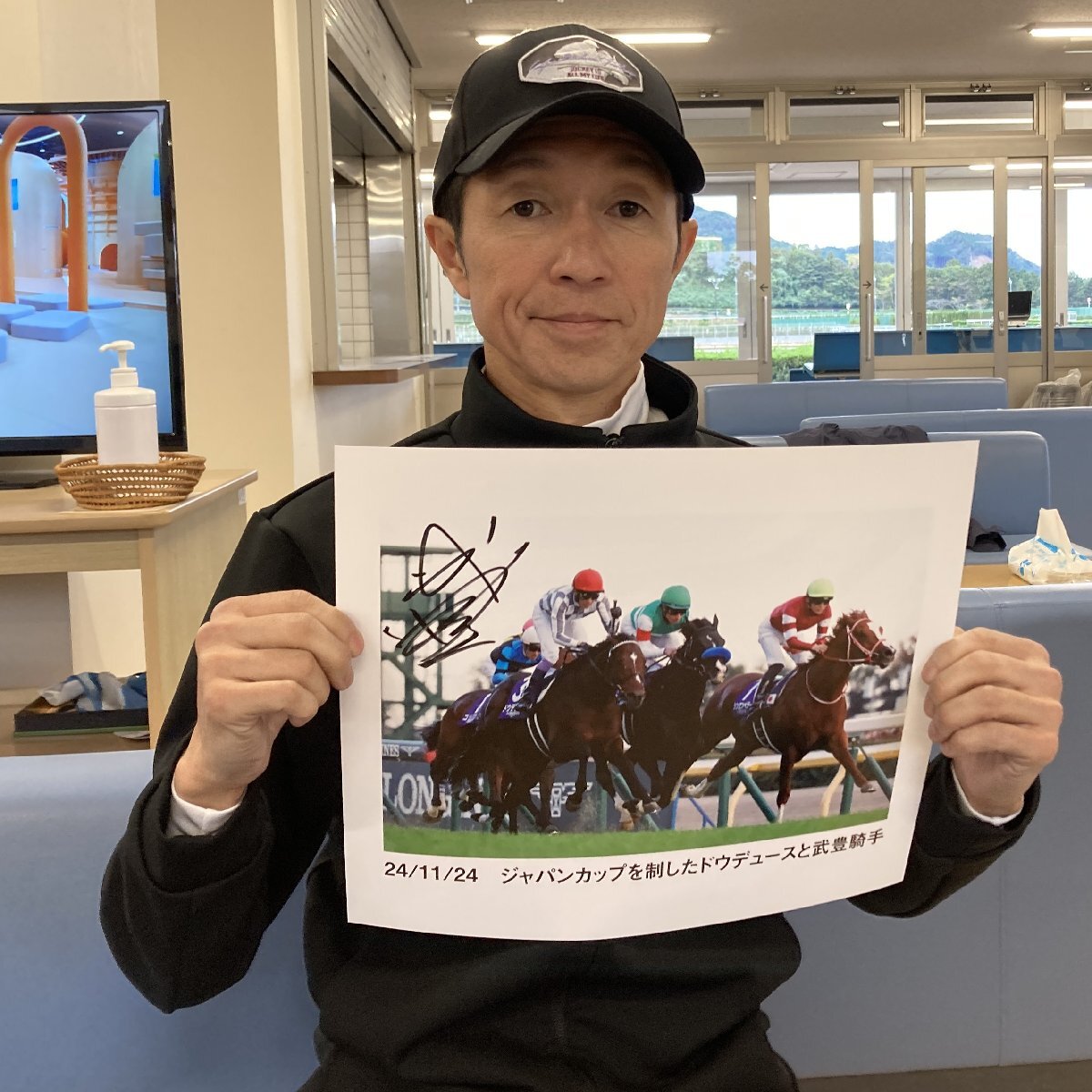 2024年ジャパンカップ にて武豊騎手がドウデュース騎乗時の写真パネルをご提供いただきました。騎手本人直筆のサイン入です。
