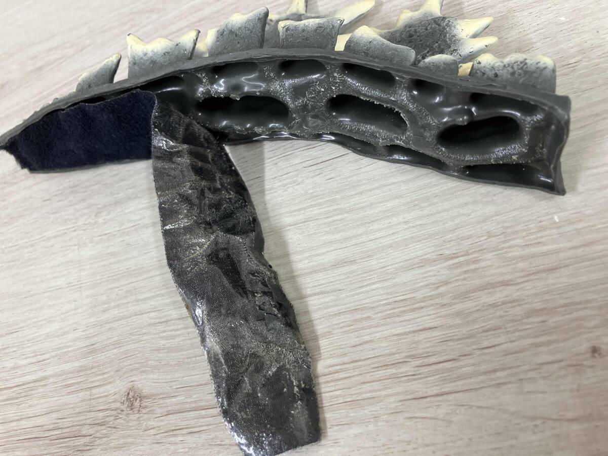 | 背鰭のマジックテープに劣化による剥がれがあります。 |