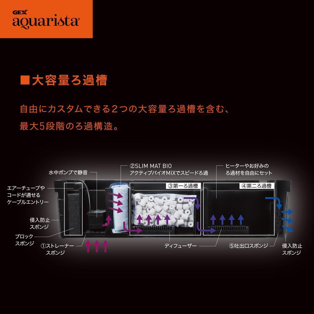 (ろ過槽水容量:約2L。第1ろ過槽の容量:約750ml。第2ろ過槽の容量約:約790ml)