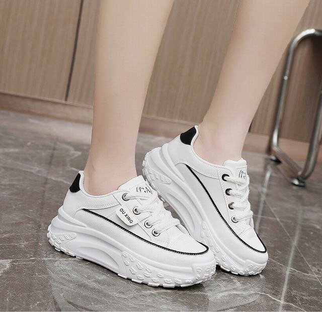 厚底スニーカー レディース インヒールシークレットシューズ 運動靴 軽量 美脚 疲れにくい レースアップ 身長アップ ホワイト 24.5cm