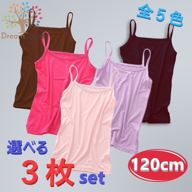 kids 全5色 選べる 3枚☆【120cm】girls キャミソール K-279 ノースリーブ キャミ 子供 インナー 下着 シャツ