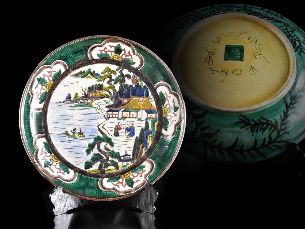 | 商品名 | 【雲】某有名資産家買取品 古九谷 青九谷 楼閣山水 賢人絵付 大皿 角福 古美術品(青手 飾皿 吉田屋窯)Y7427 OTDhgf |