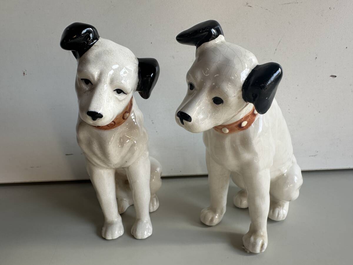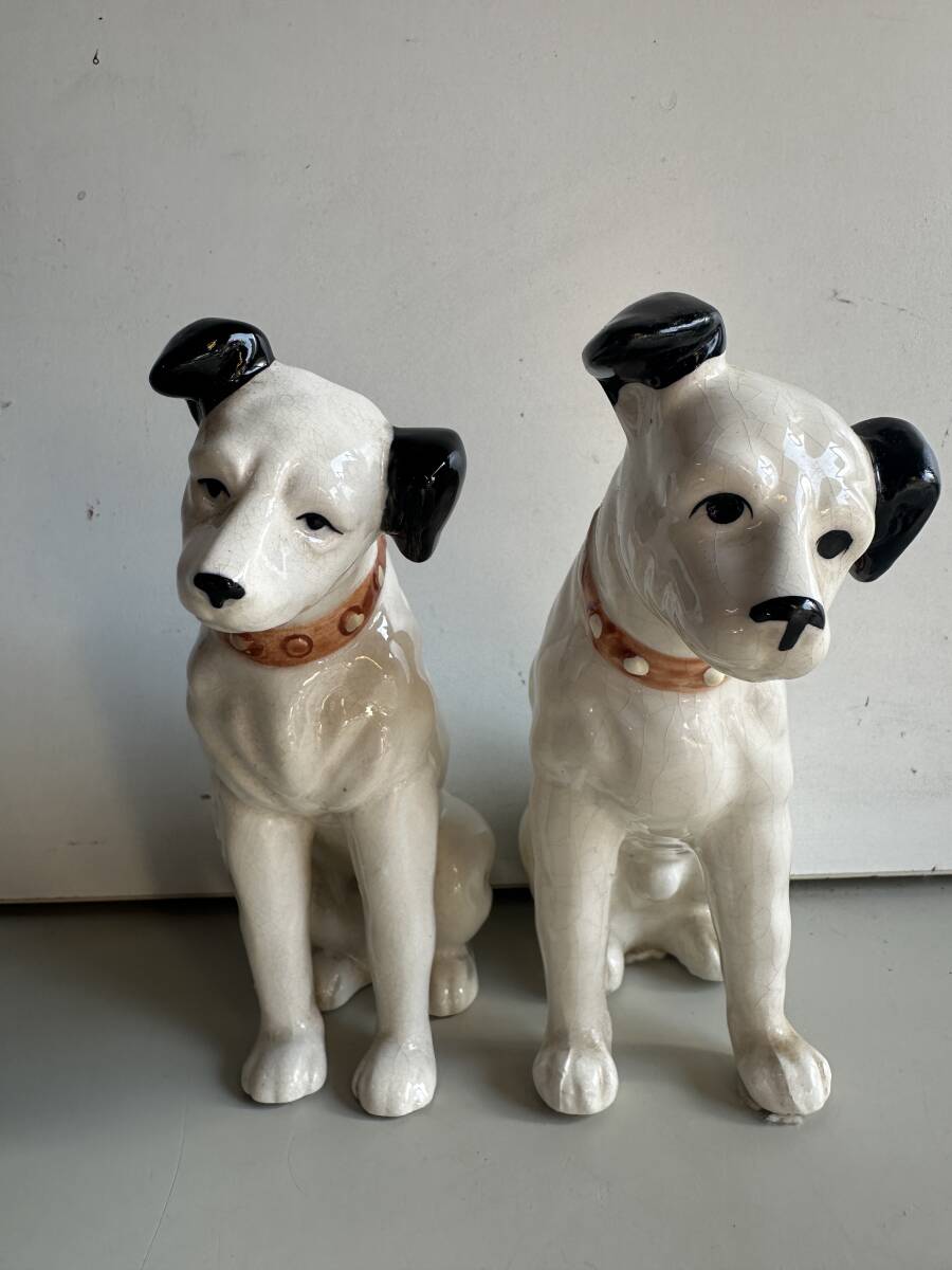 ニッパー ニッパー君 ニッパーくん Victor ビクター 陶器人形 高さ約16cm 2点 犬 いぬ 愛犬 置物 オブジェ インテリア 写真にあるのが商品すべてとなります。 *その他の付属品はございません。 ◆商品状態◆ こちらの商品は代理出品となります。 中古品ですので傷や汚れがございます。 ご了承の上ご落札ください。 商品は1点物につき返品、交換できませんので、ご理解の上入札ください。 以上ノークレームでお願いします。 *記載内容と異なる場合はご連絡ください。 | ||||