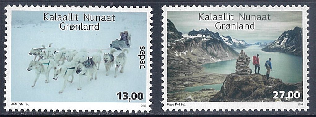 グリーンランド 2016年 #715-6(NH) 観光 / イヌゾリ, ハイカーの居る風景 / Cat.Val.$10.00-