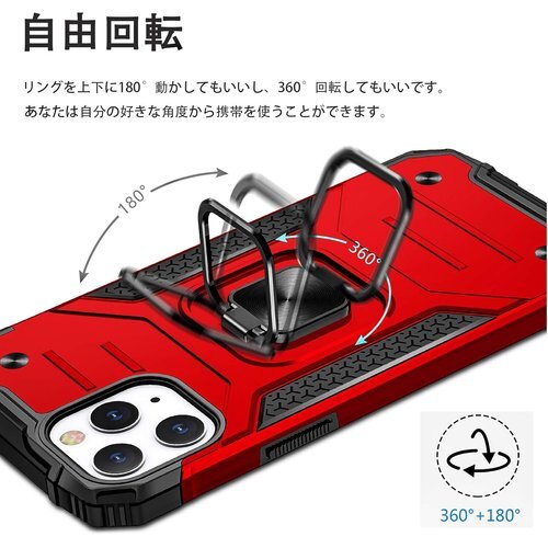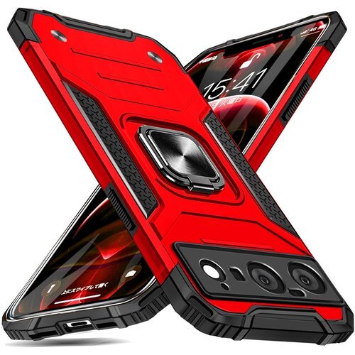 Google Pixel 6 ケース リング 衝撃吸収 耐衝撃 落下防止 米国軍事MIL標準取得 スタンド機能 PC+TPU 二重構造 防塵 薄型 軽量 一体型 360度回転 全面保護カバー Google ケース 赤 MJJ-SJ-1051-28-02 462