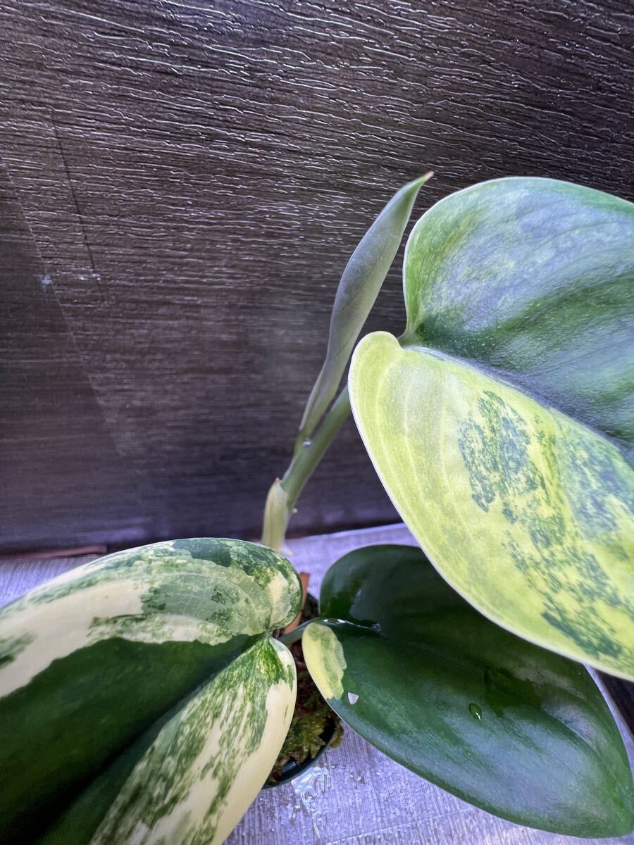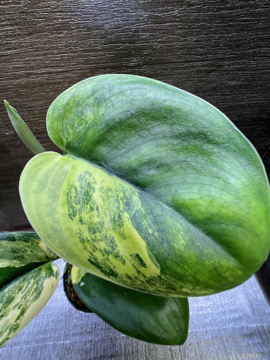 スキンダプサス特有のの肉厚葉がたまんなくて、サテン生地の様なサラサラっとした感覚が面白くて、毎日触っちゃいます(笑)