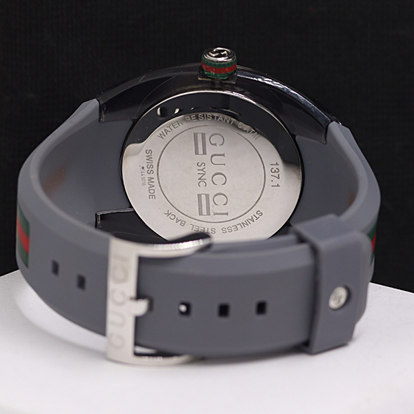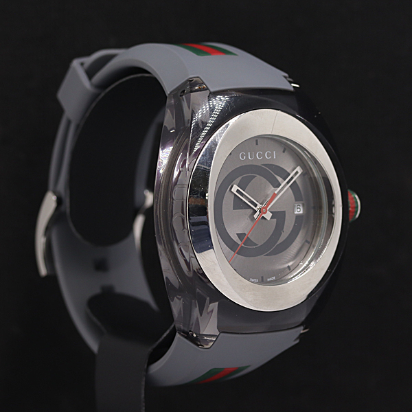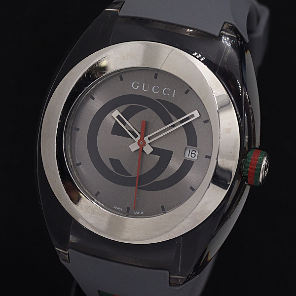 1円 稼働 良品 グッチ137.1 シンク QZ シルバー文字盤 メンズ腕時計 0133100 11BLT MTY