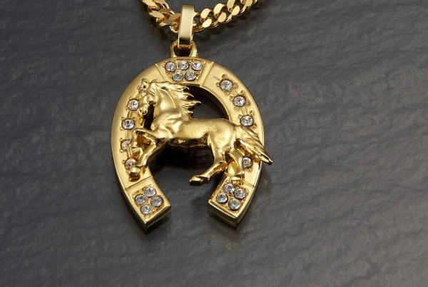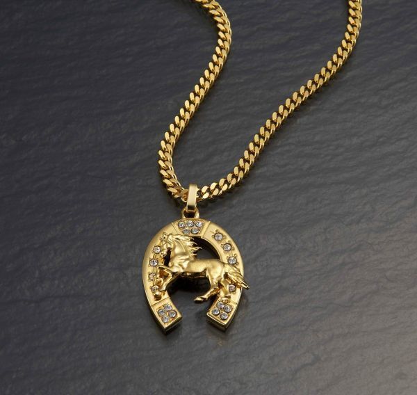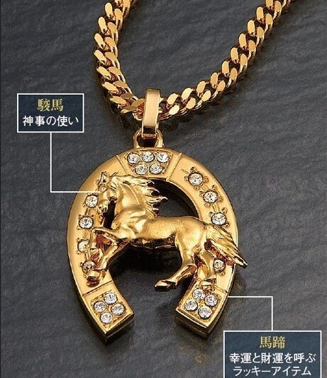 ★幸運を呼ぶ、黄金に輝く「駿馬と馬蹄」が高級感抜群のペンダント!! ★人気の定番カット喜平チエーンに21石のスワロフスキークリスタライズをあしらった煌きの馬蹄。 ★立体感、躍動感のある駿馬が、抜群の豪華さを演出。 ★馬蹄はヨーロッパでは幸運と財運を呼ぶラツキーシンボルとして人気があり、いつも身に付けられる馬蹄をモチーフのアクセサリーが人気です。 <材質> チェーン /BRASS・24KPG 馬蹄トップ / alloy・24KPG、カットガラス(スワロフスキー社製)×21石カット 喜平チエーン 約50cm , 20.5g 駿馬&馬蹄 28mm×22mm×4.9mm(4.5mm) , 18.5g 留金具:引き輪式 ![]() 【 日本製 高品質 新品 喜平ネックレス ペンダント 24金 gp 24kgp スワロフスキークリスタライズ 幸運 財運 上質 質感 高級感 重厚感 大人気 】 ※下記、注意事項をご確認いただき、ご納得いただいたうえでご入札をお願いいたします。 |