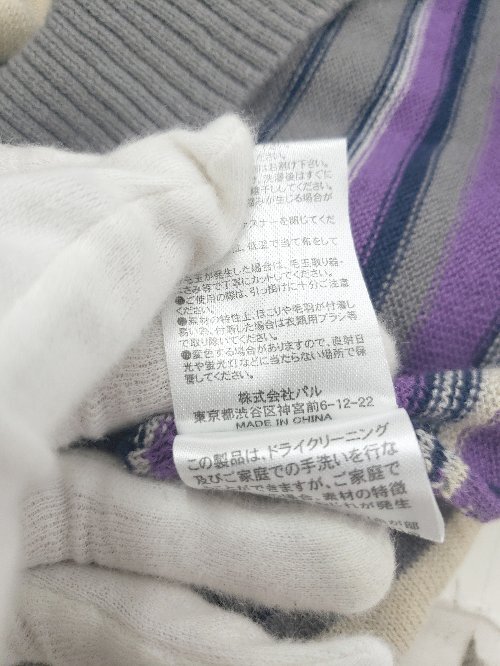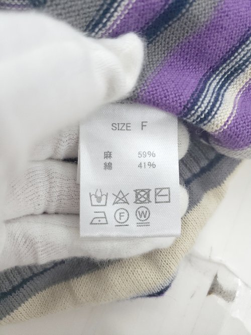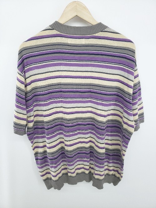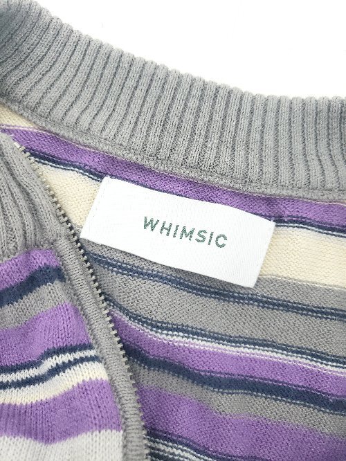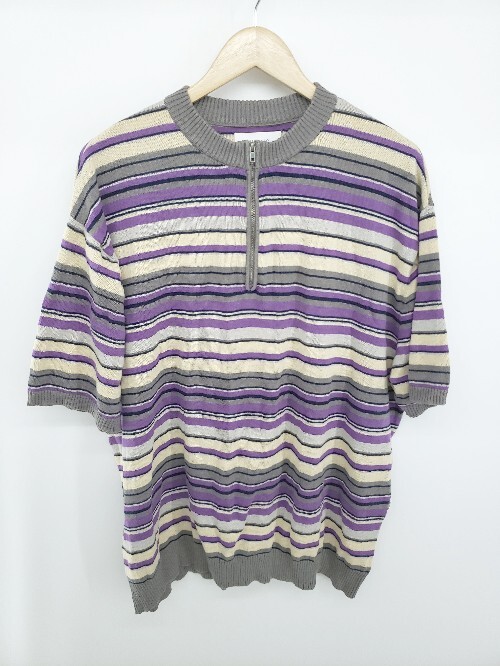 ◇ WHIMSIC ハーフジップ モックネック 五分袖 ニット カットソー サイズF グレー パープル系 マルチ レディース メンズ E