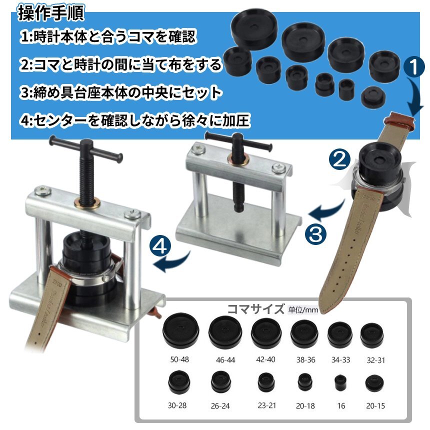 | 送料無料!!! 送料及び下記のご案内をご確認の上、ご入札お願い致します。 離島地域を除く九州、四国、本州まで送料無料。 ※北海道は+1000円、離島地域及び沖縄県は+3000円にて承ります。(発送前に加算) ※画像内にカラー及びサイズ等の選択が可能と記載がある場合がございますが、 お届けする物はタイトルまたは商品説明文に記載の物です。 ★※注文後のカラー変更や異なるカラー・サイズ指定等は一切承っておりません。 ※★※仕様(ロゴデザイン/ロゴ有無等も含む)は予告なく変更する場合があります。 ※多少の汚れや小傷がある場合がございますがご了承ください。 梱包は簡易包装ですので、箱の角落ち等はご了承願います。 【商品説明】 \自宅で時計を修理&電池交換が可能に♪/ 腕時計用台座式裏蓋締め具SET。 テコ式やハンドル型の締め具では裏蓋が閉まらない時計も◎ 台座式なら簡単&安全に裏蓋が閉められます。 上部のハンドルを捻り、徐々に力を加えられます。 作業前に時計本体と裏蓋のセンターをしっかりと確認することがPOINT! 台座ベース(コマ)はサイズ別でご用意しましたので様々な時計に対応◎ ========= 【商品仕様】 商品名:腕時計用台座式裏蓋閉め具 パッケージ内容:合計11点セット [注意事項] ※汎用タイプですが時計の構造により使用が難しい場合がございます。 ※モニターにより色合いが若干前後する場合がございます。 ※輸入品ですので多少の臭いやスレ傷、汚れはご了承ください。 ※当て布は必ずご用意/ご使用下さい。 ※仕様やデザイン、パッケージ等は予告なく変更される場合がございます。 ========= ※詳細は画像にてご確認ください ![]() ![]() ![]() ![]() ![]() ![]() ![]() |