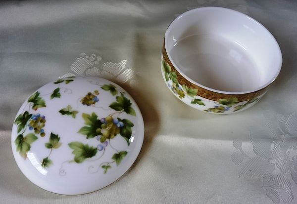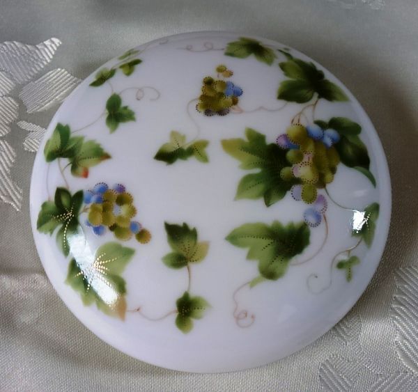 サイズは蓋が直径約10.5センチ、高さ約2.5センチ、容器が直径約10.6センチ、高さが約3.8センチです。仕舞っていたのでホコリや汚れ等はあります。未使用ですが、一度人手に渡っているので中古扱いとします。ノーリターンノークレームの守れる人にお譲りします。ライセンスを取って日本で制作した製品だと思います。一部容器の金縁が剥げているように見えるのは、マークを入れるための構造で、ハゲではありません。