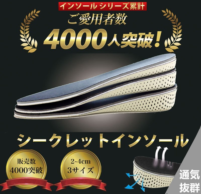 インソール シークレット 身長アップ 防臭 通気 低反発 身長アップ 中敷き 衝撃吸収 男性用 女性用 インソール スポーツ 2cm