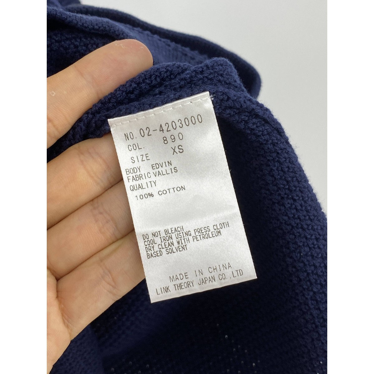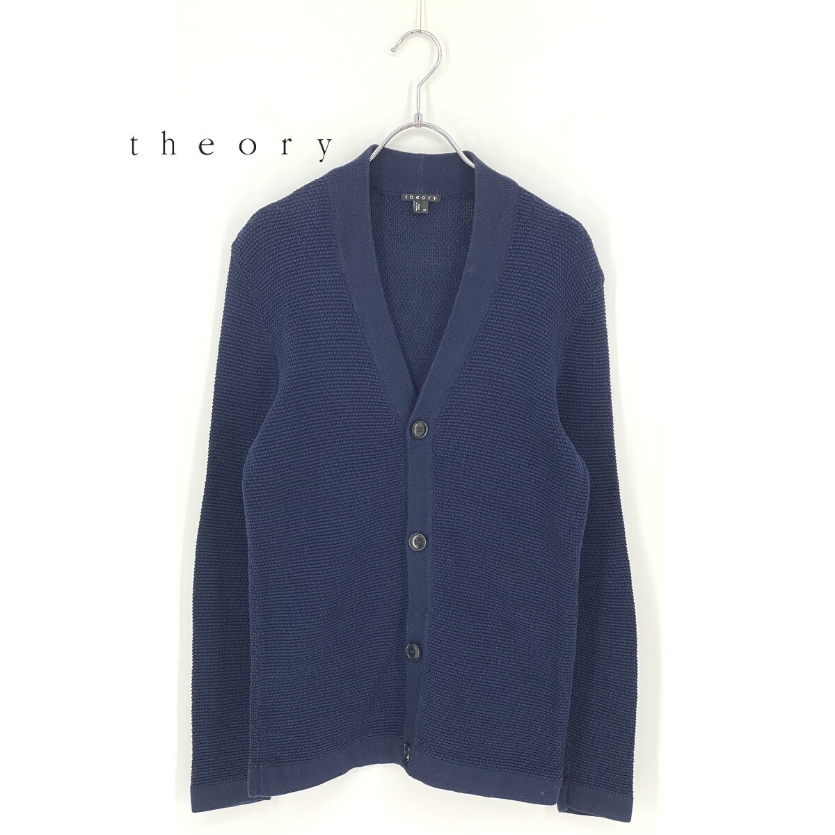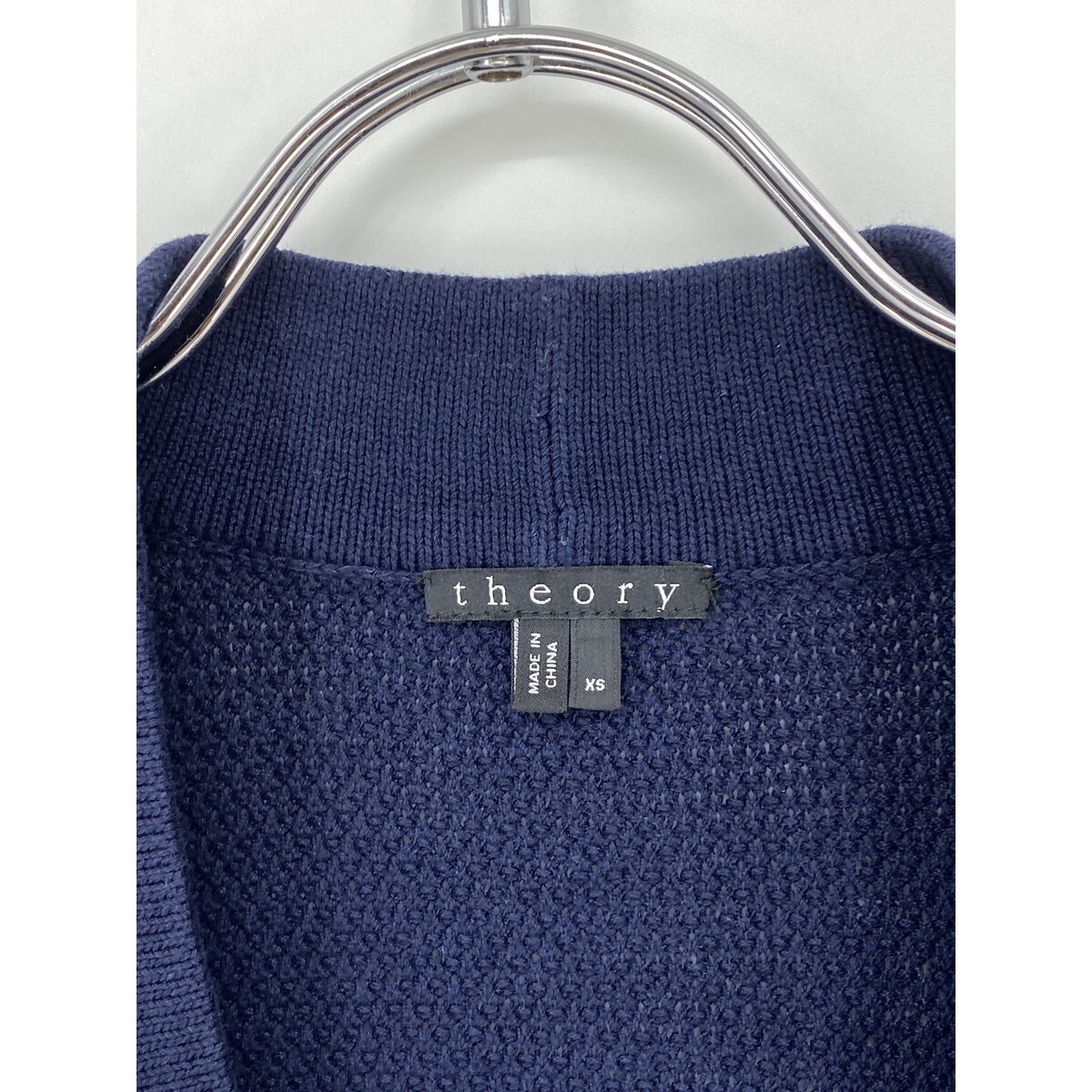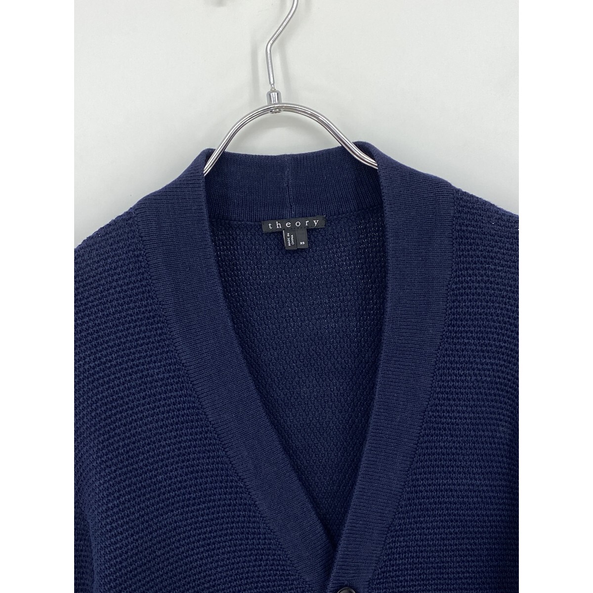B0779/美品 theory セオリー コットン サーマル Vネック 長袖 ニット リブ カーディガン ジャケット XS 紺 メンズ レディース セーター