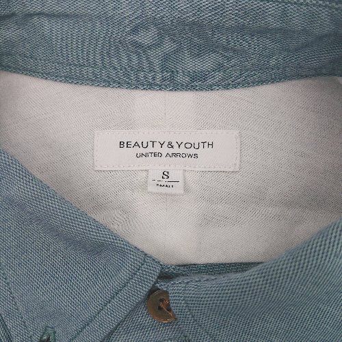 ◇ beauty&youthUNITED ARROWS フロントボタン ストレッチ ラウンドカット 長袖 シャツ サイズS ブルー レディース E