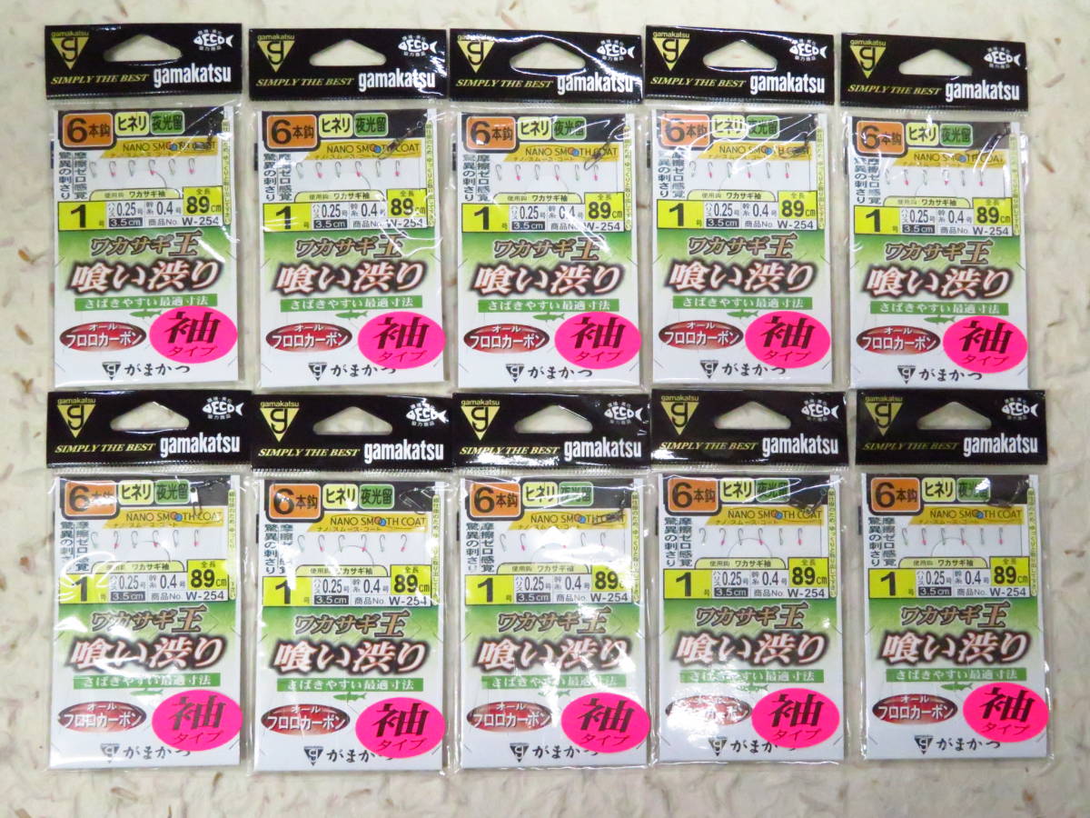 ●特価品● がまかつ W-254 ワカサギ王 喰い渋り 袖タイプ 6本針 1号 10個セット 新品 仕掛け わかさぎ ワカサギ 1.0号