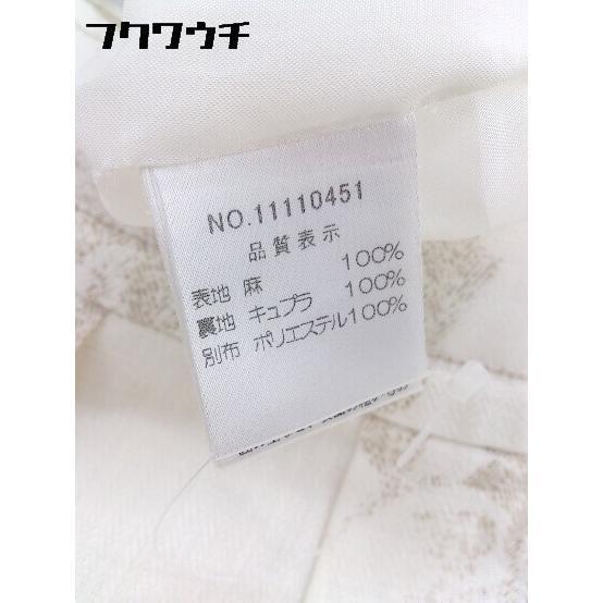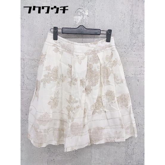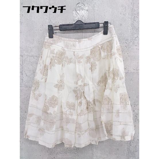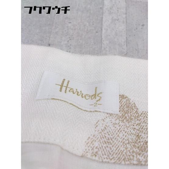 ◇ Harrods ハロッズ リネン100% 総柄 膝丈 フレア スカート サイズ2 ホワイト系 レディース