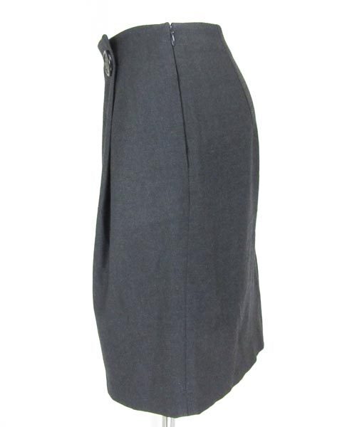 | シンプルであきのこないスカート。流行に関係ないデザインです。きちんと感があり、ビジネスシーンやお子様の学校行事などでお使いいただけます。大き目ボタンが特徴です。 |
