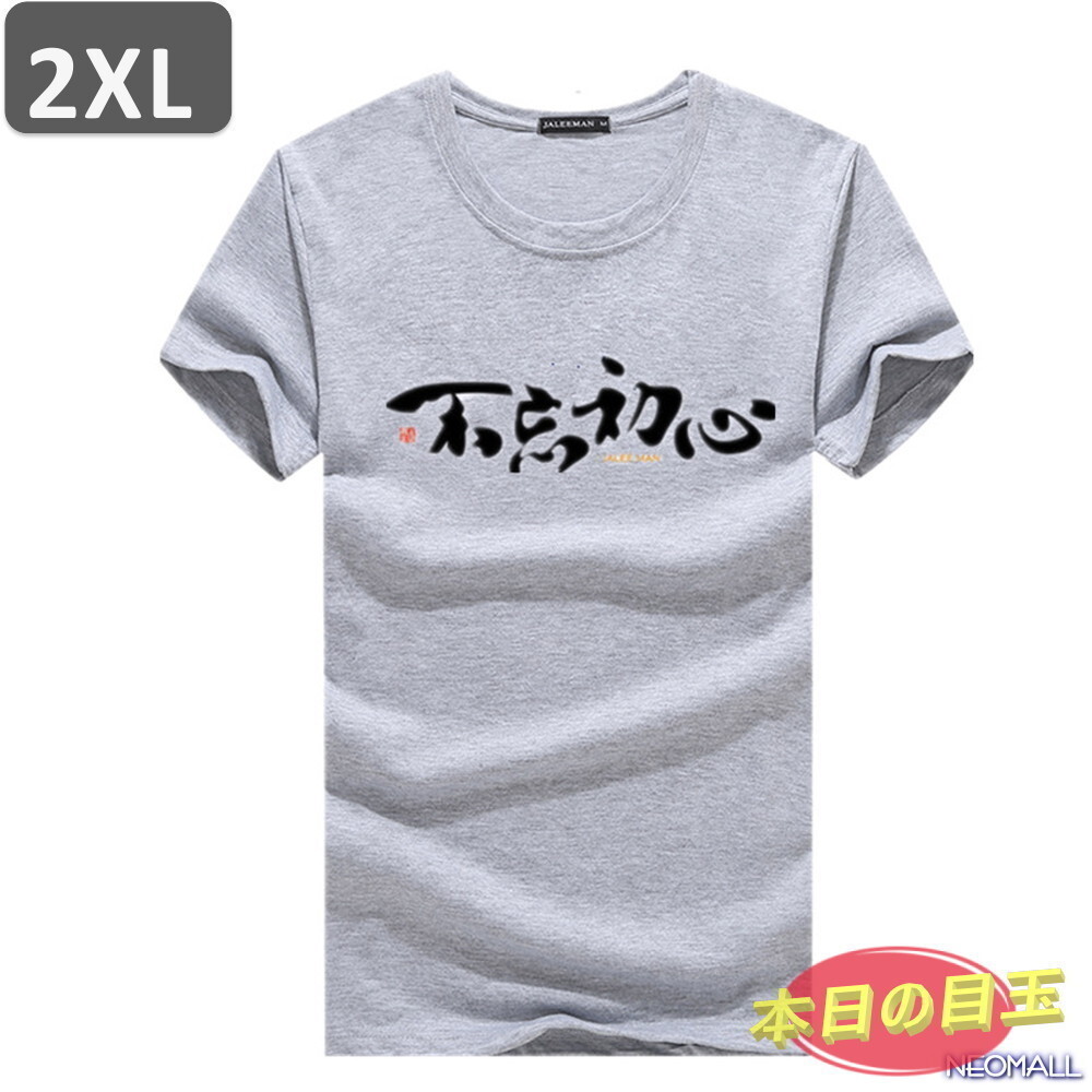 本日のお買得 ☆ 丸首 半袖 Tシャツ【463】 グレー 2XLサイズ トップス シャツ シンプル イラスト デザイン 春夏