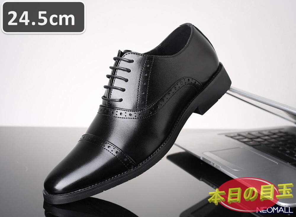 本日の目玉 ☆ メンズ ビジネス レザー シューズ ブラック サイズ 24.5cm 革靴 靴 カジュアル 屈曲性 通勤 軽量 【428】