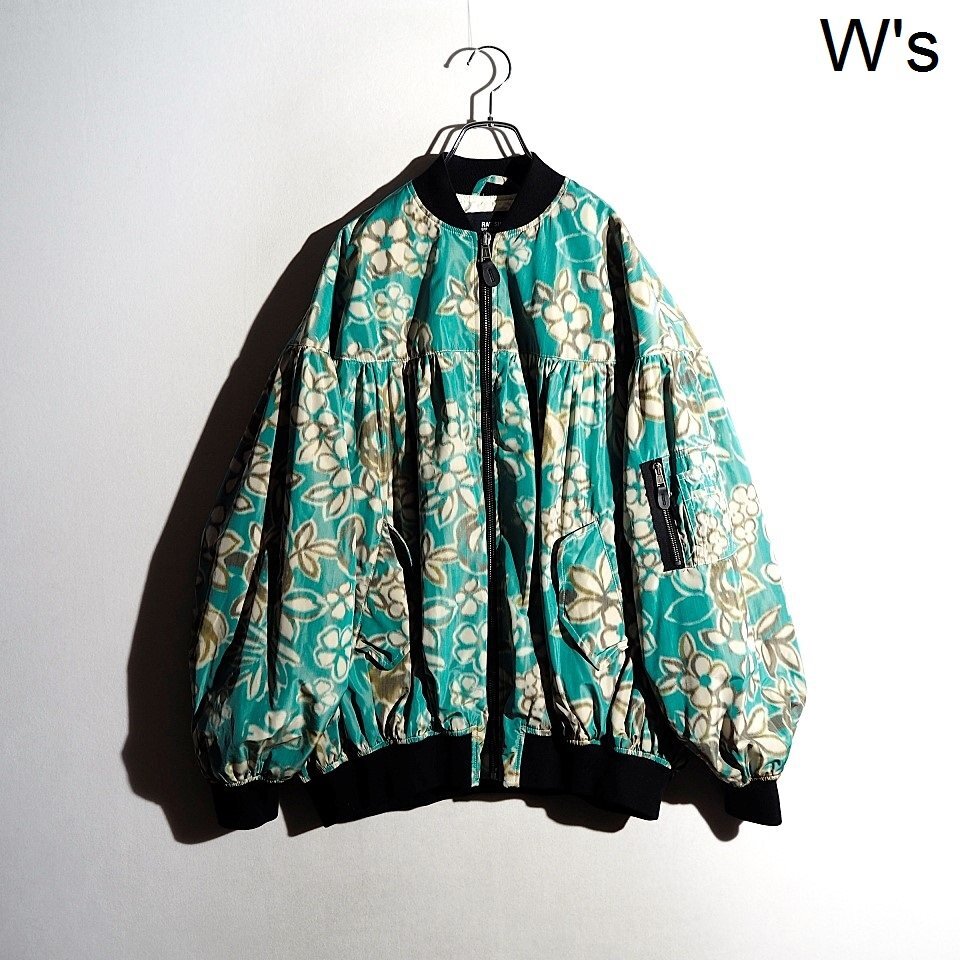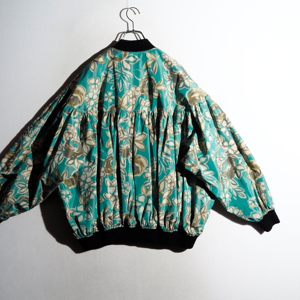 22SS(春秋がベスト) 花柄 ボンバージャケット ブルーグリーン 38 オーバーサイズ