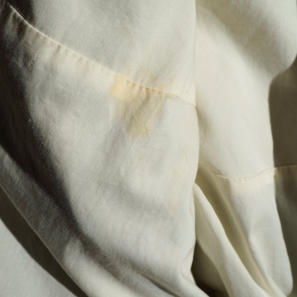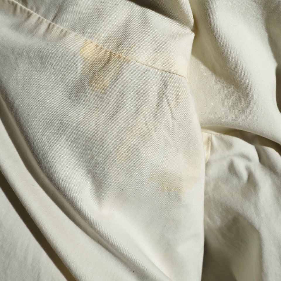 裏地のネック~バスト周り、裾周りなどにシミや汚れあり(一部写真7~9枚目を参照・表に影響なし)