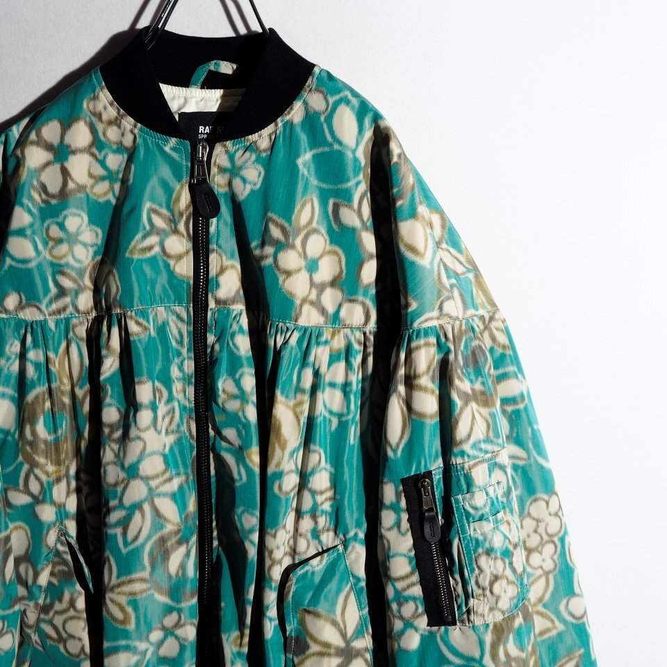 R3057h1 ▼RAF SIMONS ラフシモンズ▼ 22SS Gathered couture bomber 花柄 ボンバージャケット ブルーグリーン 38 レディース 春秋 rb