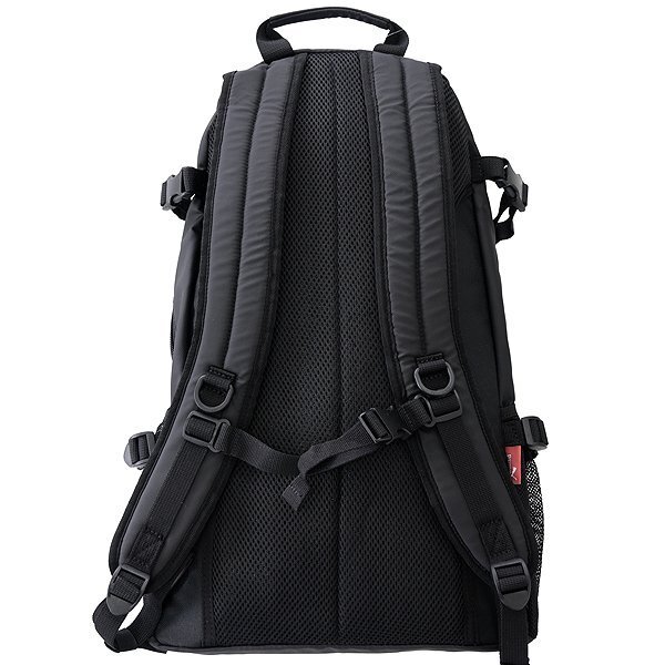 突然の雨にも強い撥水コーティング生地を採用し、様々なシーンで活躍してくれるバックパックです。 シンプルなフォルムのスマートデザインで、力強さを感じるエンボス加工のPUMAロゴがフロントに配置されています。 容量18LでA4ファイル対応可能なサイズで、メイン収納部にはノートPCも入れられるゆとりのクッションスペースがあります。 たくさんのアイテムがしまえるマルチポケット仕様になっていて、特にフロントのポケットはマチ付き立体構造なので、シューズ等のかさばるものも収納でき、通勤・通学・スポーツ・レジャーなど幅広く対応できます。 両サイドにはペットボトル等の収納に適した、口ゴム付きメッシュポケットが設けられています。 通気性の高い背面3Dメッシュパネルを採用し、ショルダーストラップもメッシュ&クッション仕様になっています。 【デザイン】 ・メイン収納部はWジップで開閉 ・内部にA4ノートPC対応可能なクッション付きポケット1つ、ファスナー付きポケット1つ ・前面にジッパー付きサブ収納ポケット1つ ・左右にメッシュポケット2つ ・ショルダーストラップは長さ調節可能(着脱はできません) |