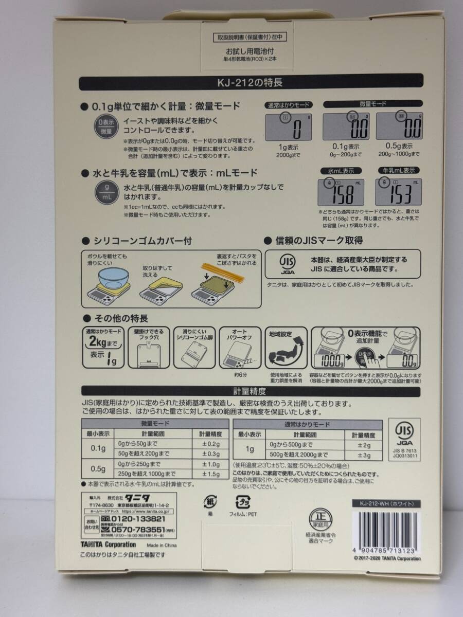 タニタ (TANITA) キッチンスケール 2kg ホワイト KJ212