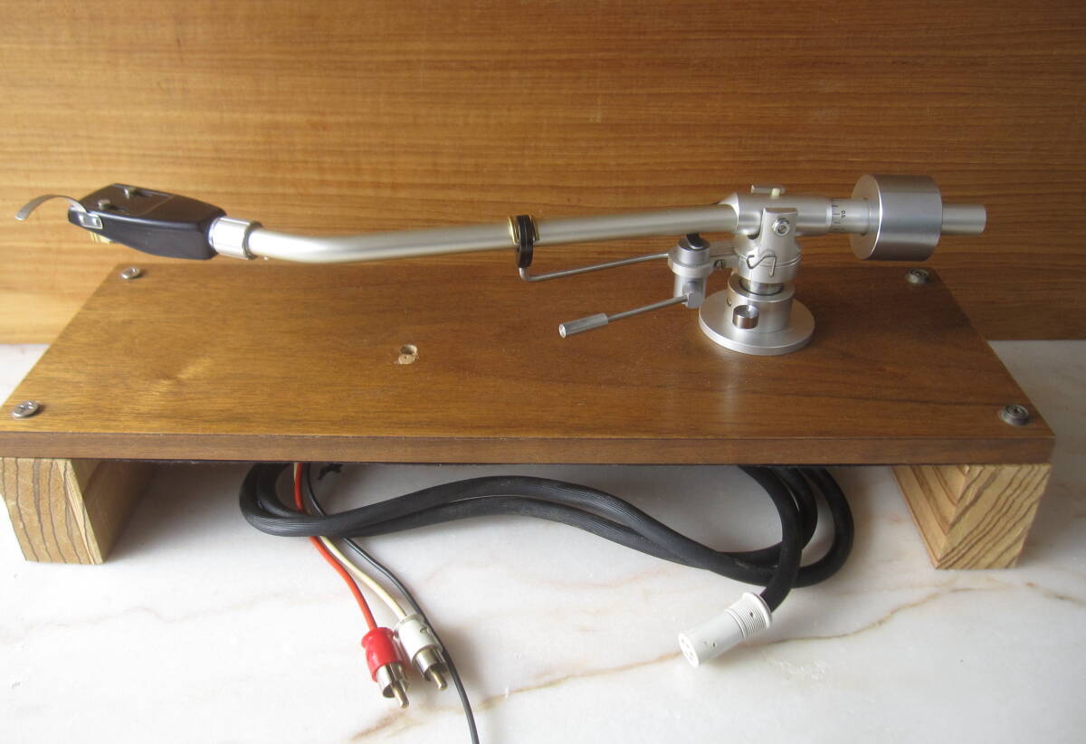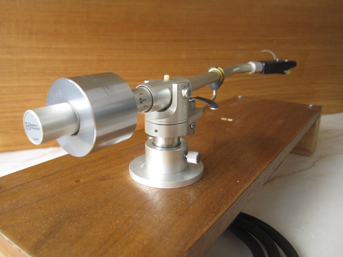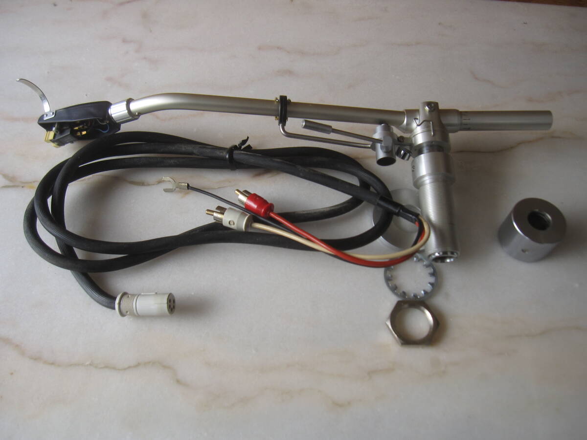 私の商品をごらんいただき、誠にありがとうございます。 Fidelity-Research FR-54 1971年6月発売のトーンアームです。 不必要な装飾や加工は省き、良い音を出すためのシンプルな設計を追及したユニバーサルトーンアーム。 インサイドフォースキャンセラーや針圧印加機構なども極めてシンプルな構造となっており、確実な動作が可能です。 古い品物ですが、状態は良く、動作も良好です。尚、カートリッジはSHUREのM-91GDが取り付けてありますが、針はカンチレバーが折れております。 この様な、商品ですが宜しければ、ご検討くださいませ。 尚、商品の発送はゆうパック便の、60サイズでの、ご発送を予定させていただきます。画像の中の木製の台は撮影用で、出品物には含みませんので、ご理解ください。