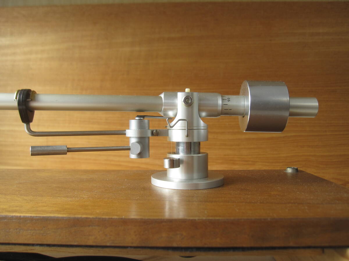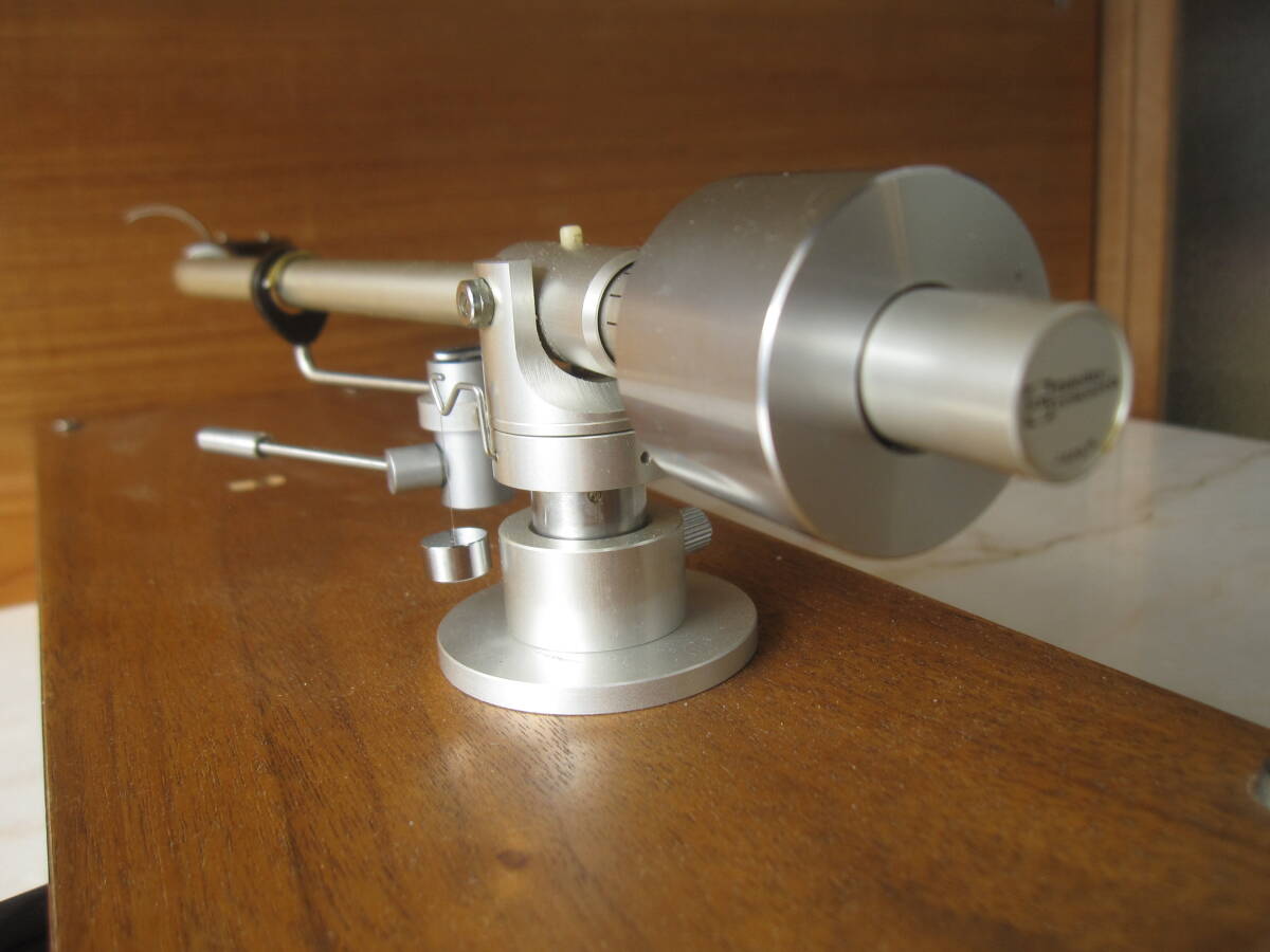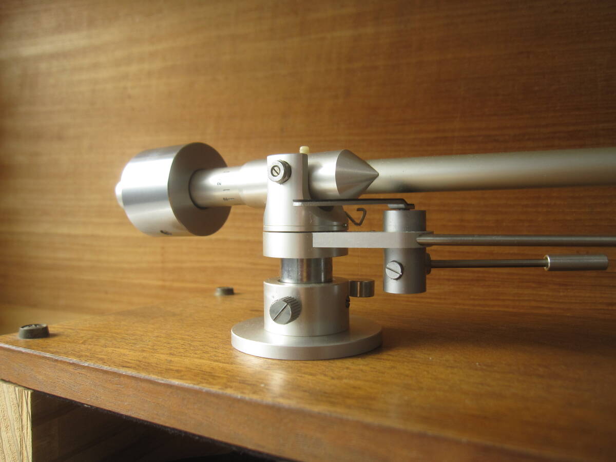 私の商品をごらんいただき、誠にありがとうございます。 Fidelity-Research FR-54 1971年6月発売のトーンアームです。 不必要な装飾や加工は省き、良い音を出すためのシンプルな設計を追及したユニバーサルトーンアーム。 インサイドフォースキャンセラーや針圧印加機構なども極めてシンプルな構造となっており、確実な動作が可能です。 古い品物ですが、状態は良く、動作も良好です。尚、カートリッジはSHUREのM-91GDが取り付けてありますが、針はカンチレバーが折れております。 この様な、商品ですが宜しければ、ご検討くださいませ。 尚、商品の発送はゆうパック便の、60サイズでの、ご発送を予定させていただきます。画像の中の木製の台は撮影用で、出品物には含みませんので、ご理解ください。