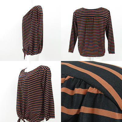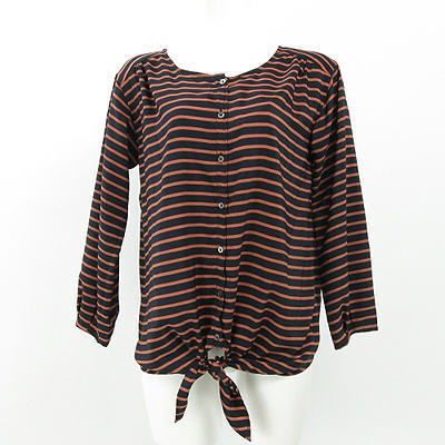 | ネイビー×オレンジ系の色使いが大人可愛いブラウス♪ フロントの裾はリボン結びするデザインで、 ウエストラインをすっきりと見せてくれます☆ 細ボーダーでカジュアルになりすぎないので、 かっちり感のあるジャケットを羽織っても◎ 未使用品でお薦めです。 肩幅約45cm バスト約100cm 着丈約54cm 袖丈約48cm 【サイズ】:(F) 【素 材】:(ポリエステル100%) 【 色 】:(紺、オレンジ系) 【程 度】:(S) 管理番号 8390-20131101-001 499 015 | ||||