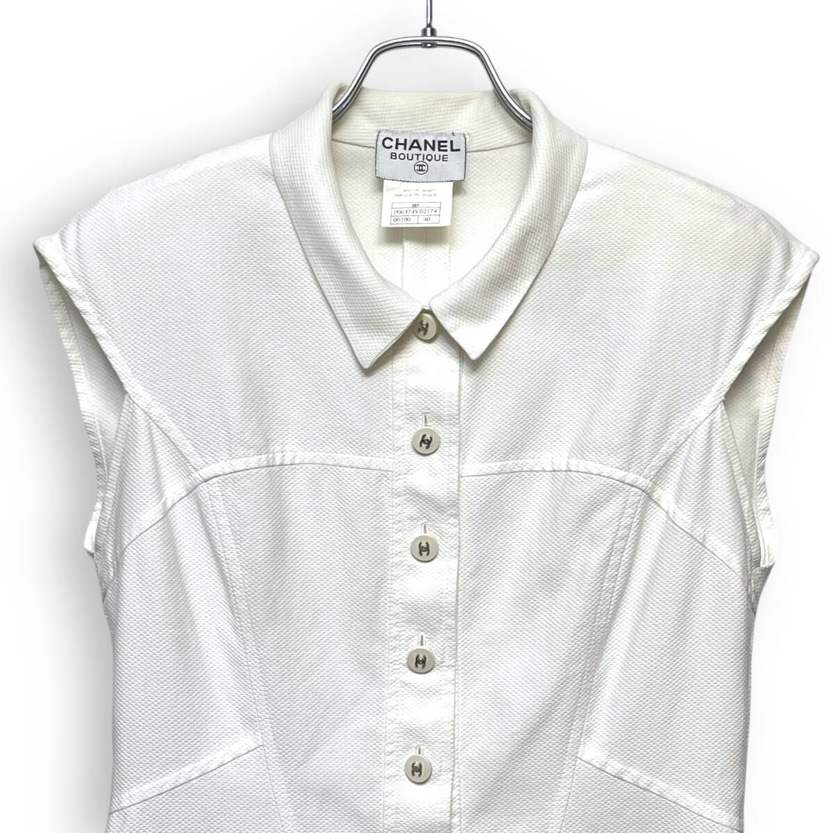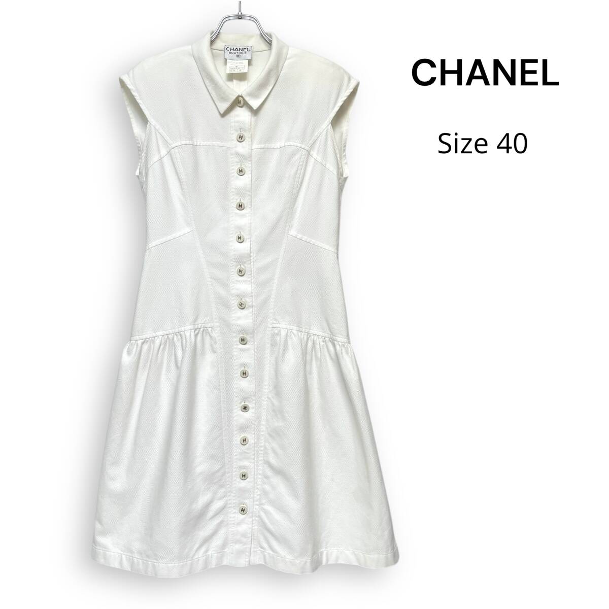 M2590/ CHANEL シャネル 90s 希少 ココマークボタン コットン ワンピース ホワイト サイズ40