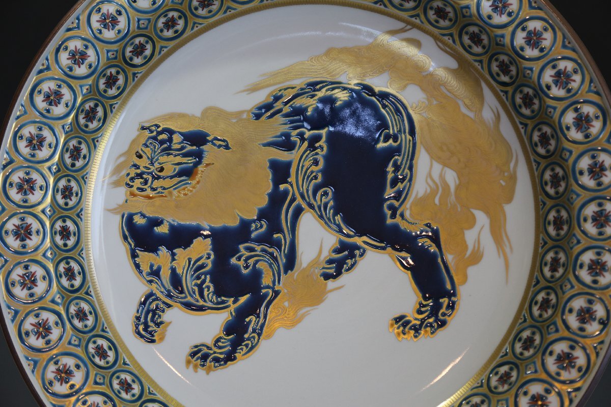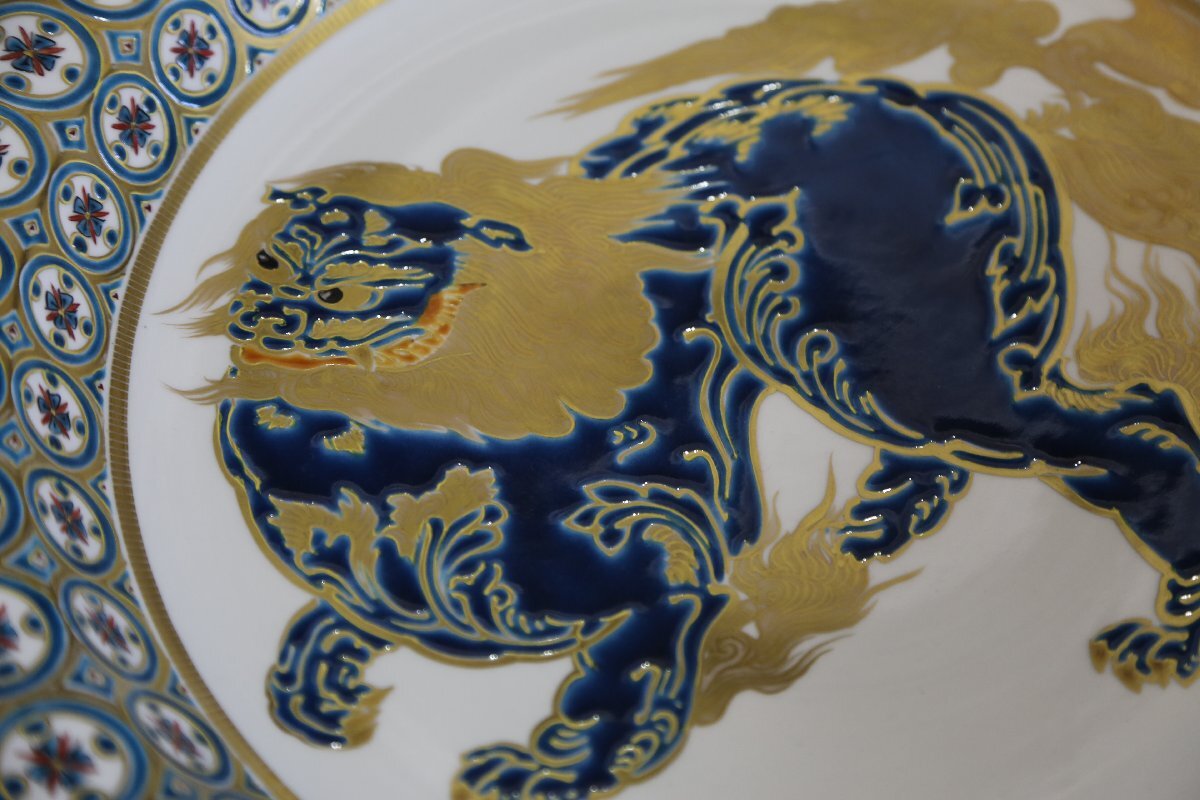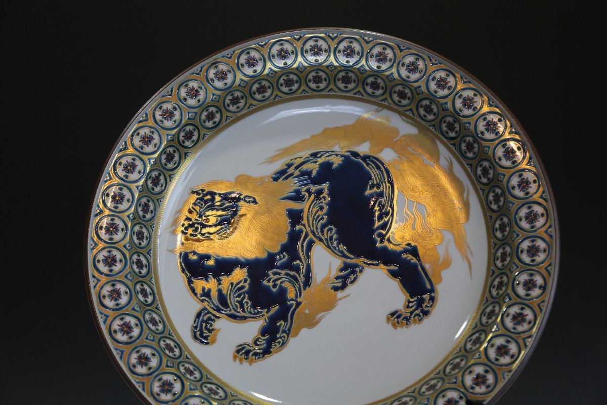 ★★★ 九谷焼 山岸政明 獅子の図 飾皿 ★★★ 100