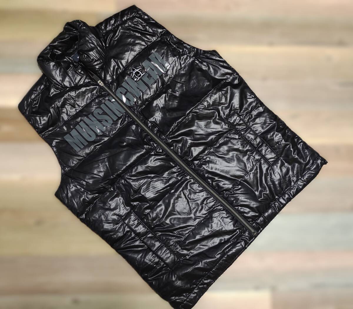 全国送料無料!★Munsingwear★マンシング ダウン90%でかロゴ ダウンベスト 黒 L