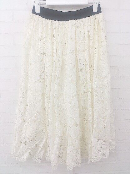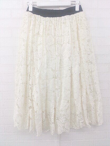 ◇ Ray Cassin レイカズン 花柄 レース レーヨン混 膝下丈 フレア スカート サイズF オフホワイト系 レディース P