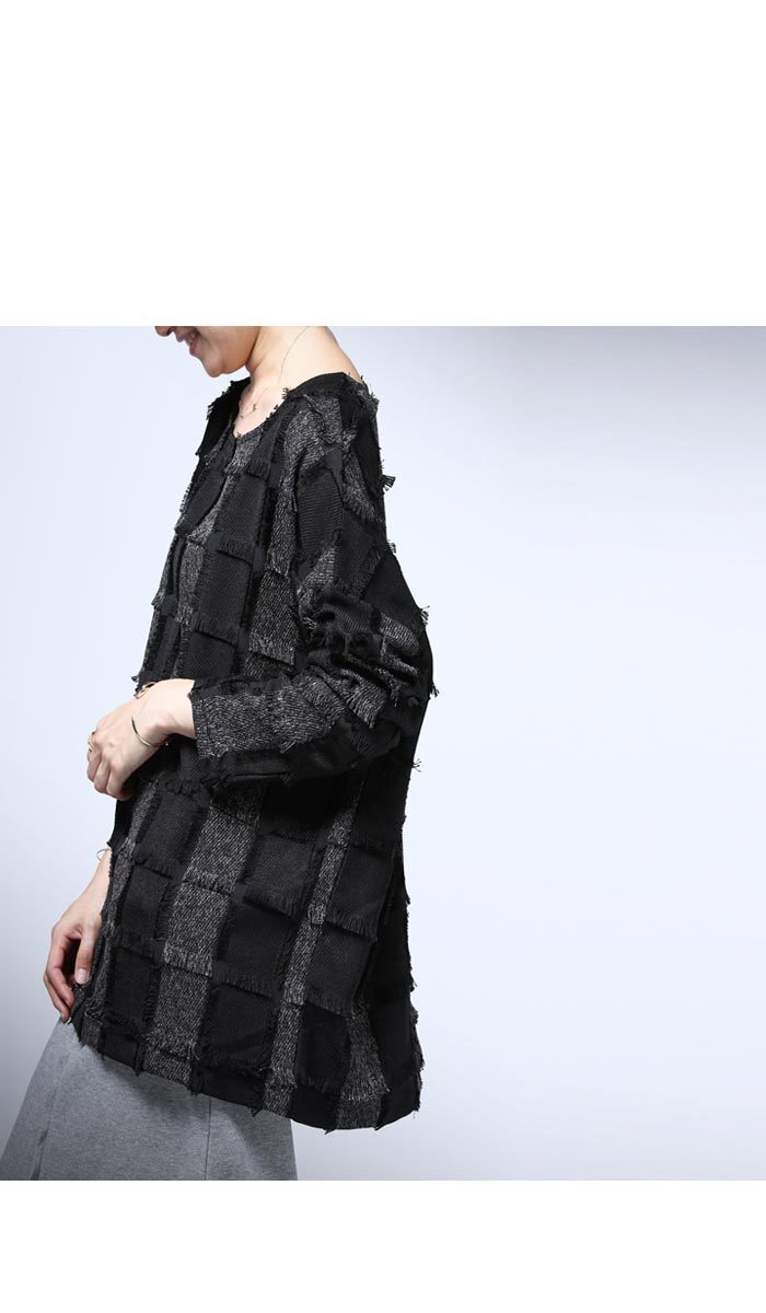 アンティカantiqua★チェック柄をモードに取り入れる。フリンジチェックトップス