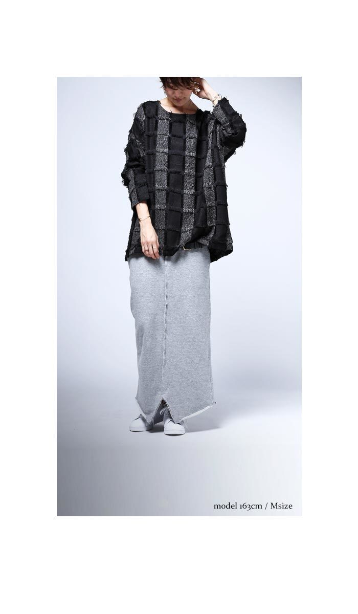 ゆとりあるバサッと被るプルオーバータイプで何でも合う。