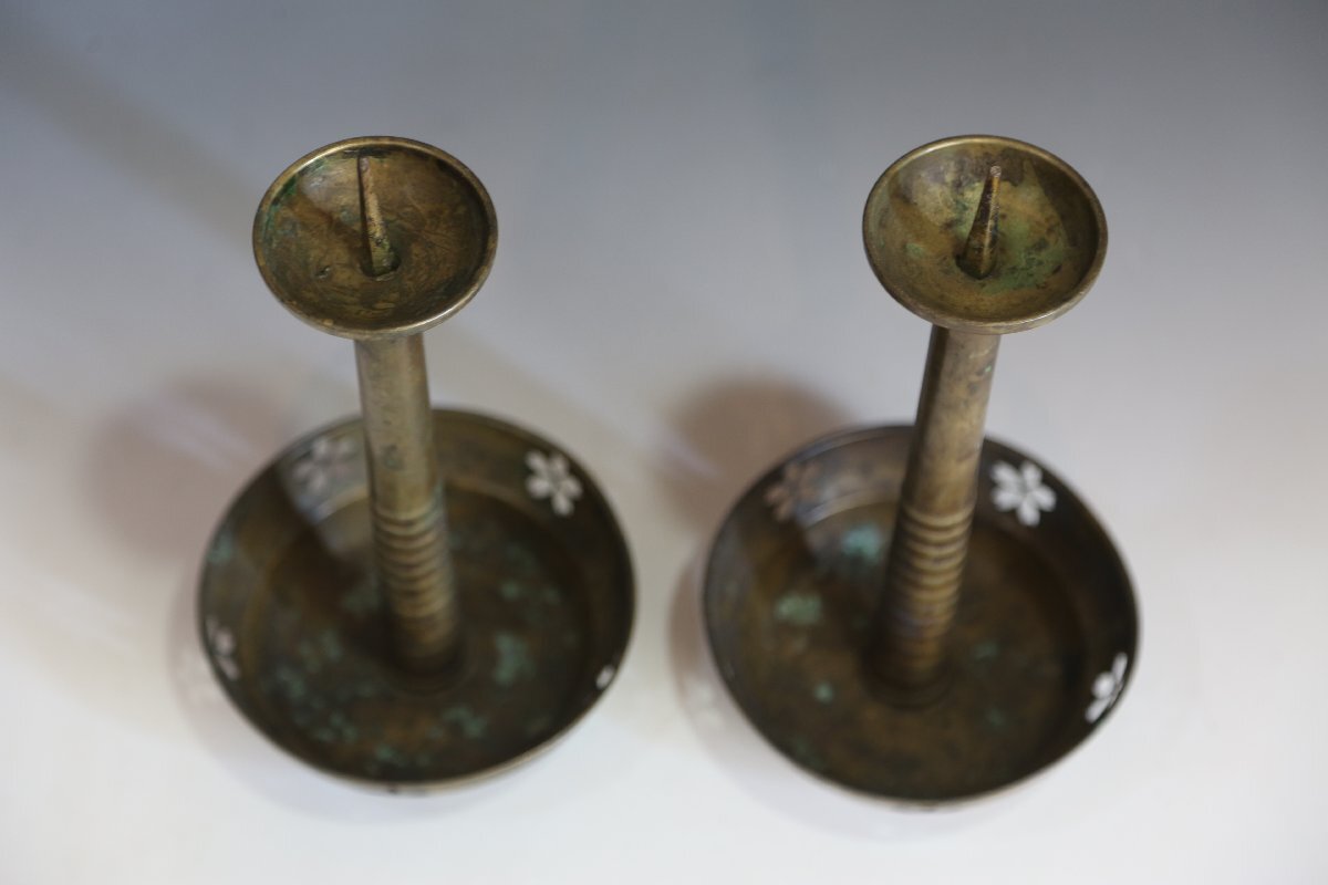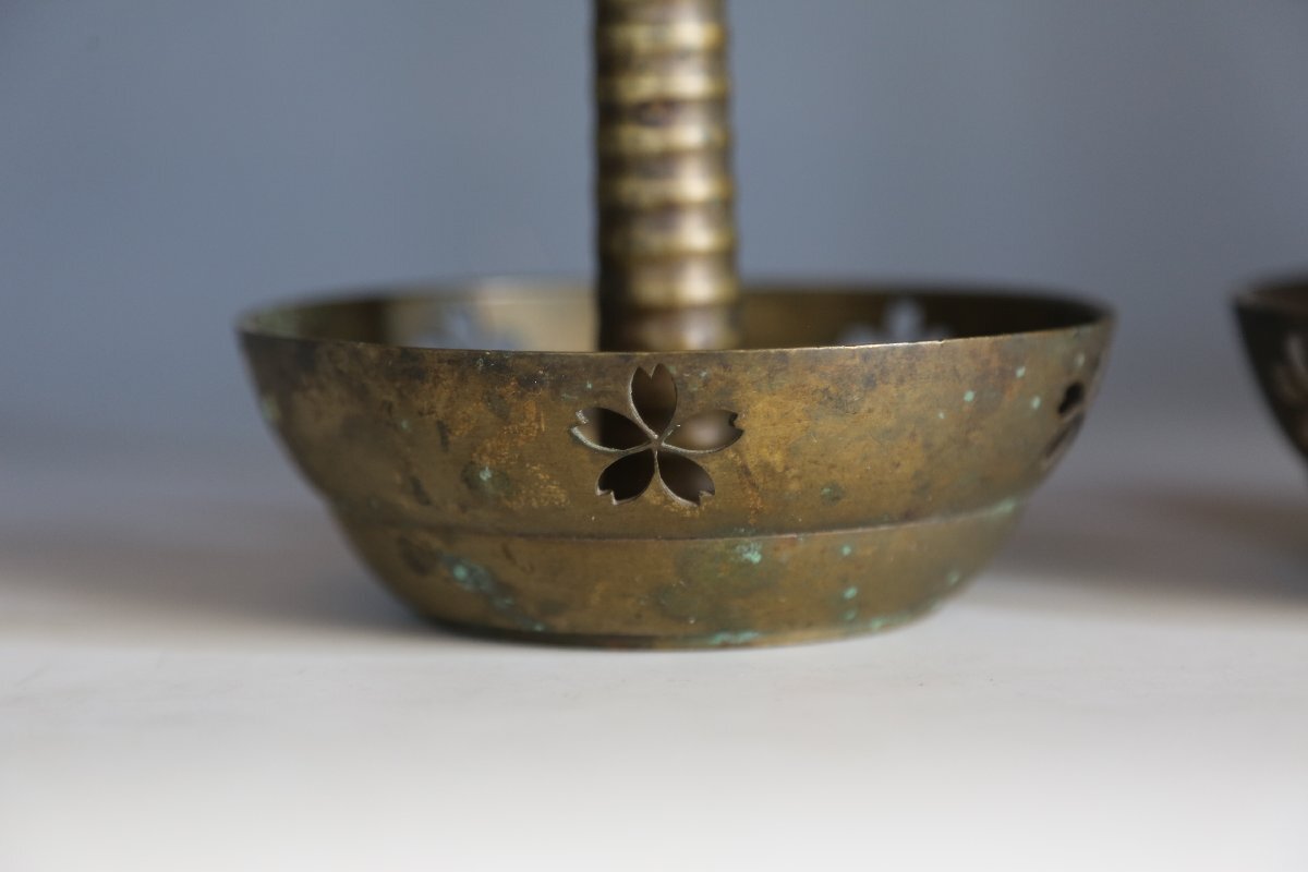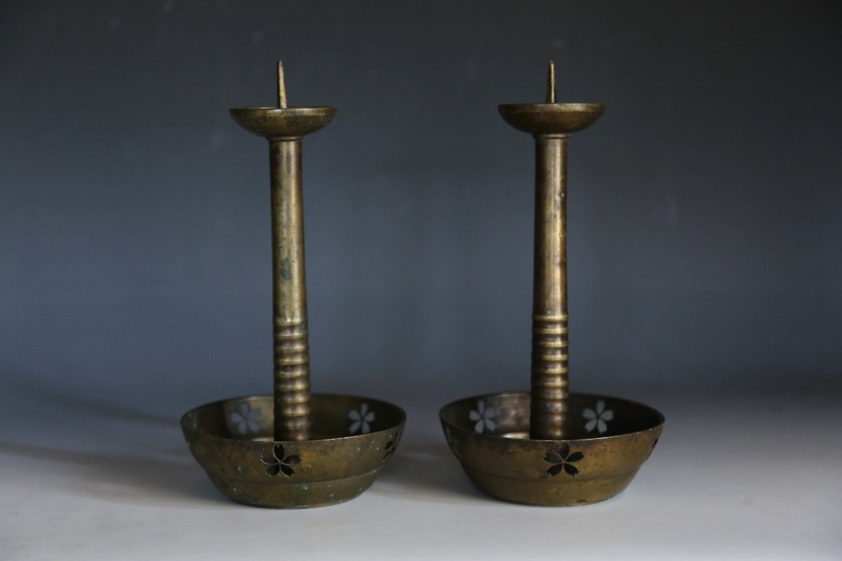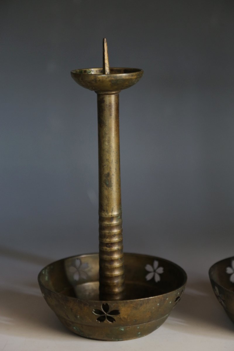 ★★★ 明治期 真鍮製 桜透かし 燭台 一対 ★★★