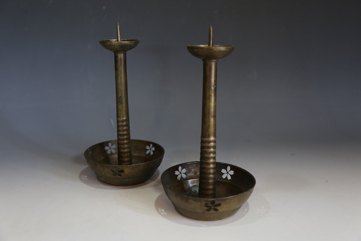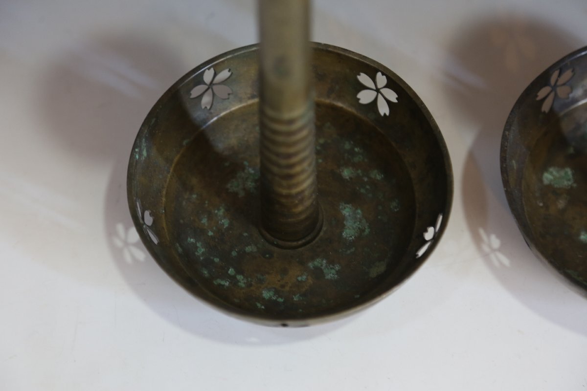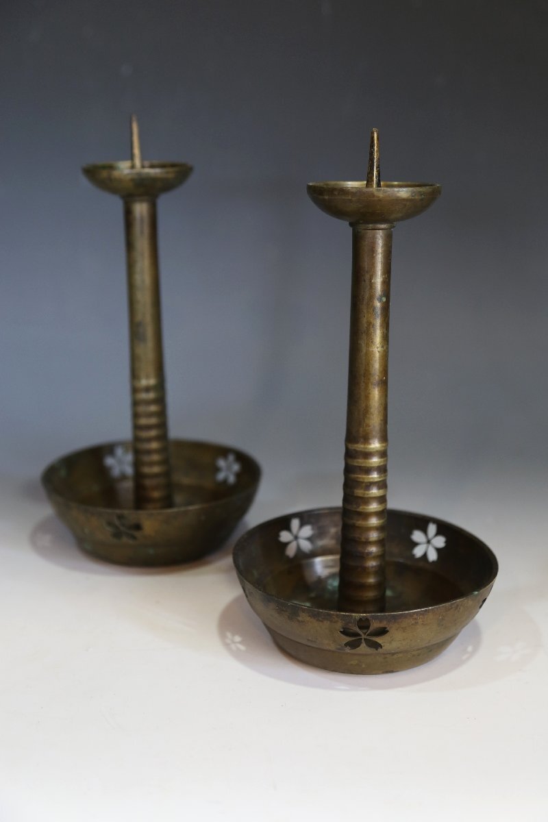 ★★★ 明治期 真鍮製 桜透かし 燭台 一対 ★★★ 65