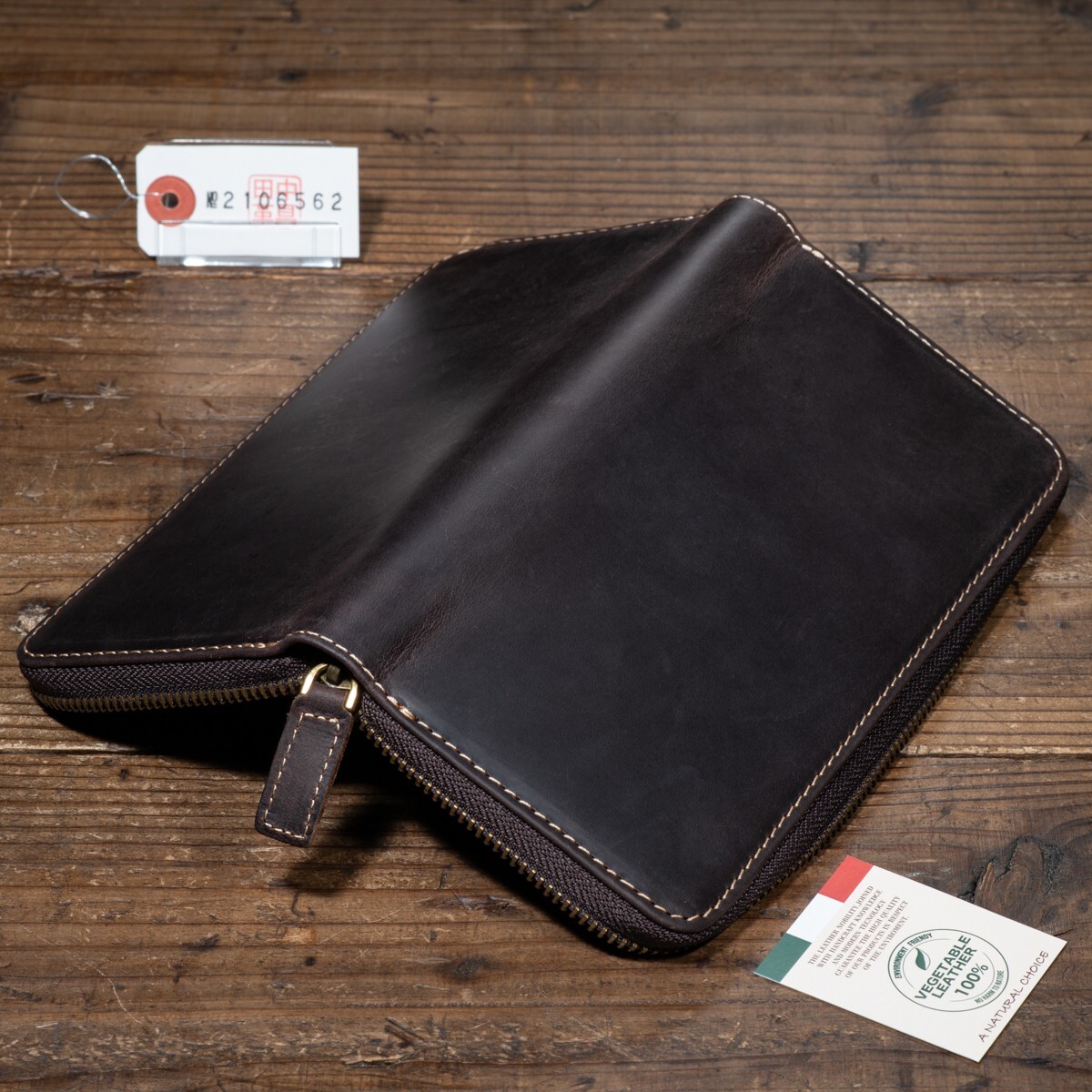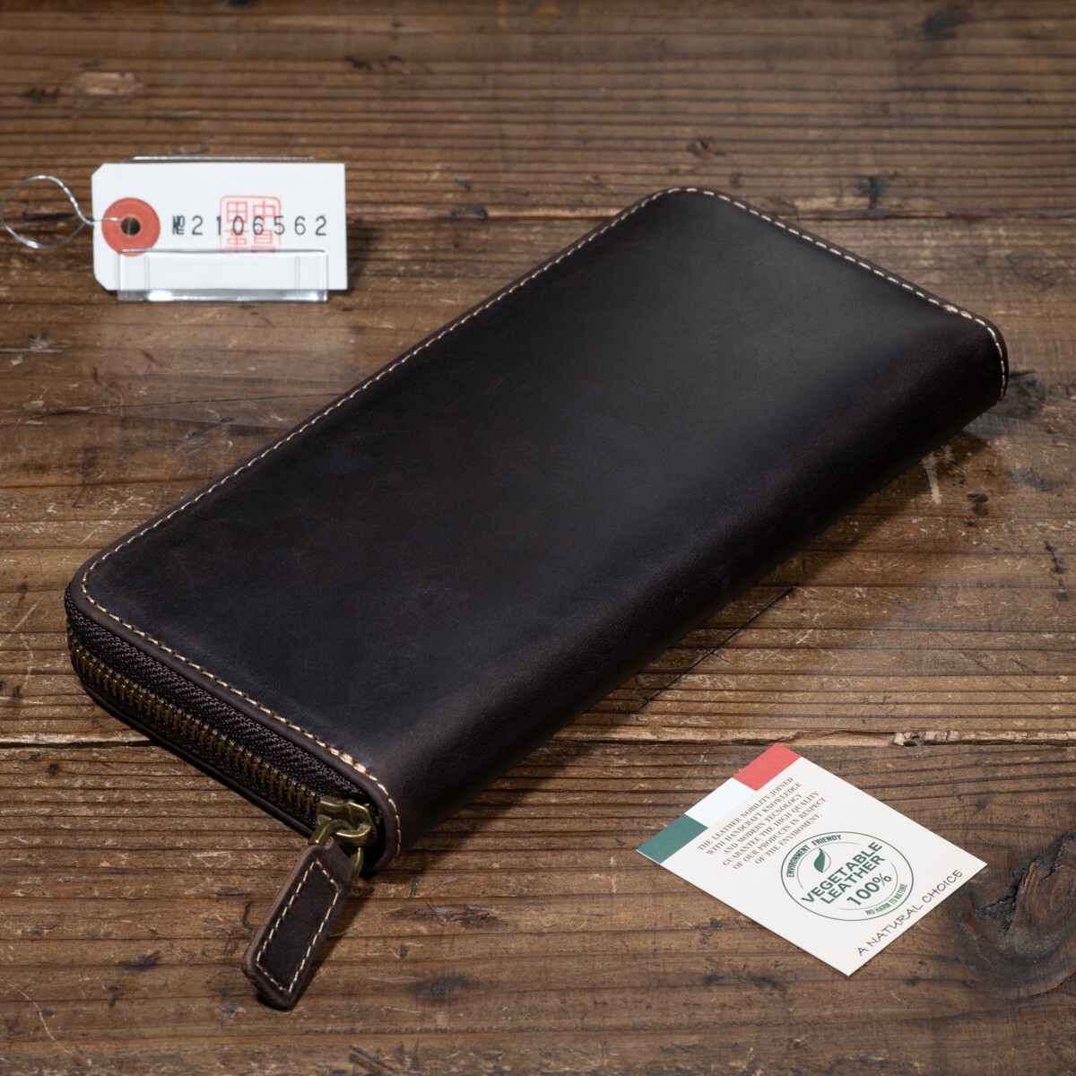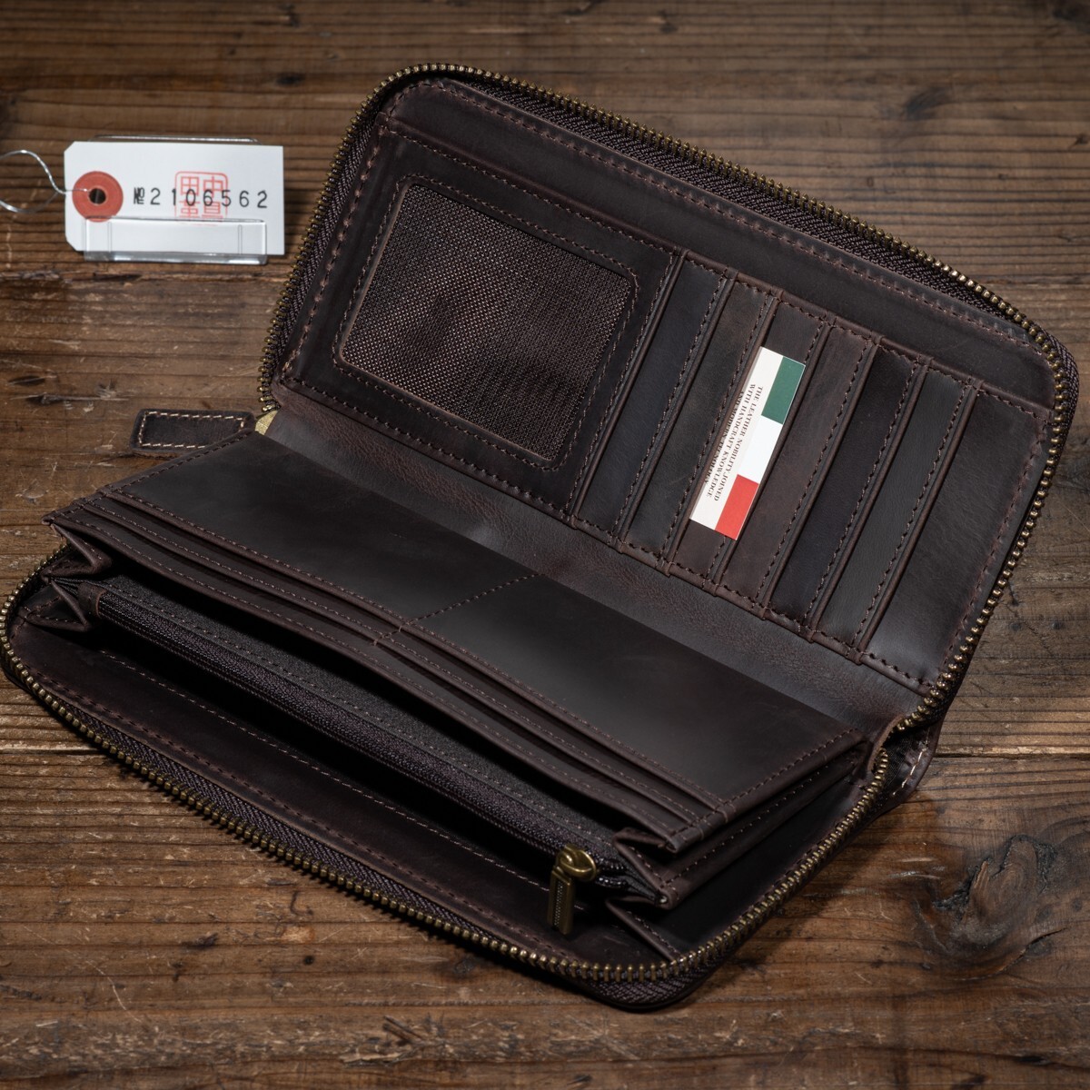 オイルヌバック【牛革】イタリアンレザー メンズ 本革 長財布 ラウンドファスナー 新品 未使用 送料無料 1円 茶 ブラウン 田中革具