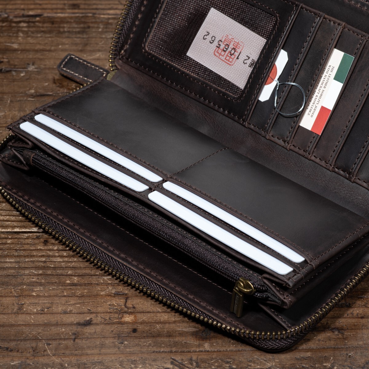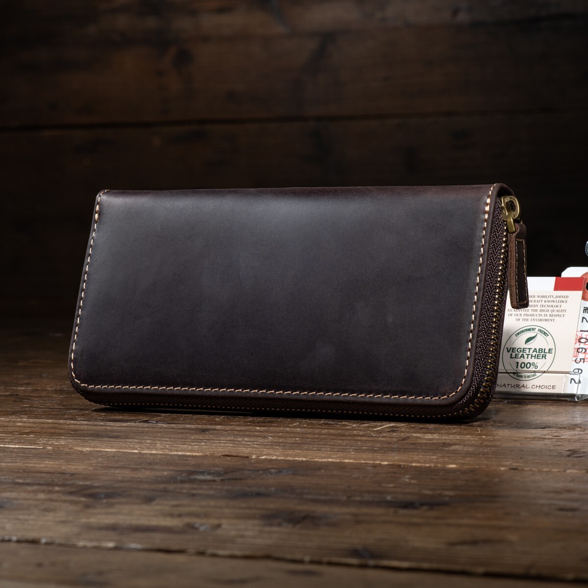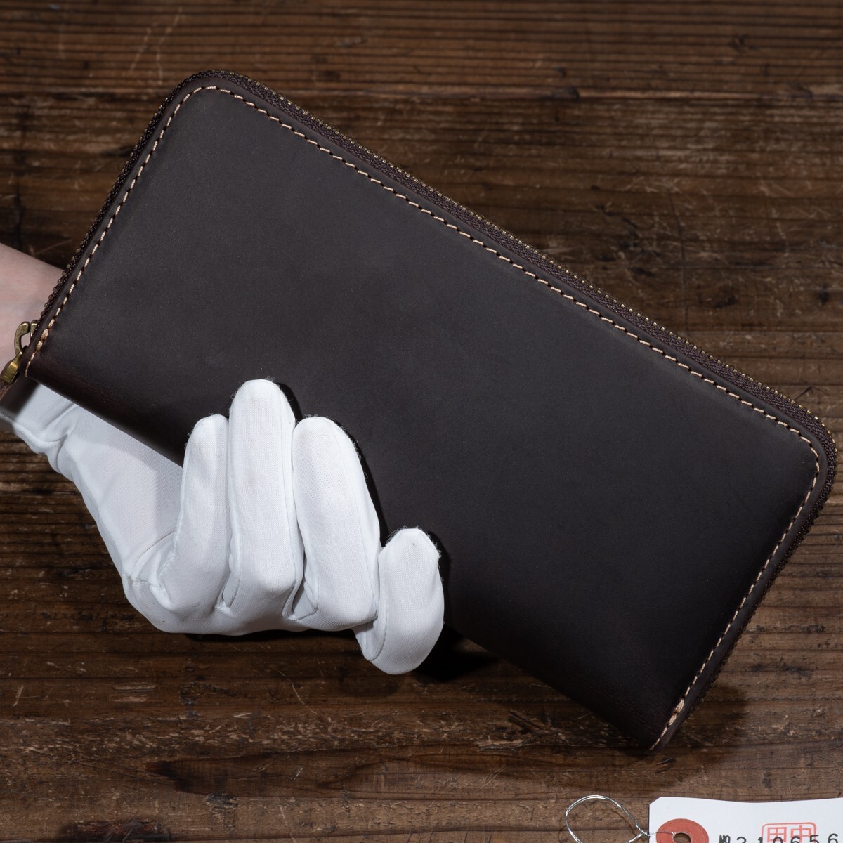 オイルヌバック【牛革】イタリアンレザー メンズ 本革 長財布 ラウンドファスナー 新品 未使用 送料無料 1円 茶 ブラウン 田中革具
