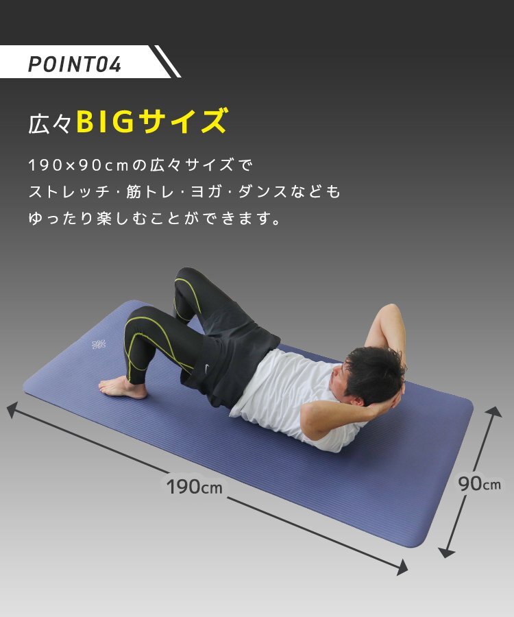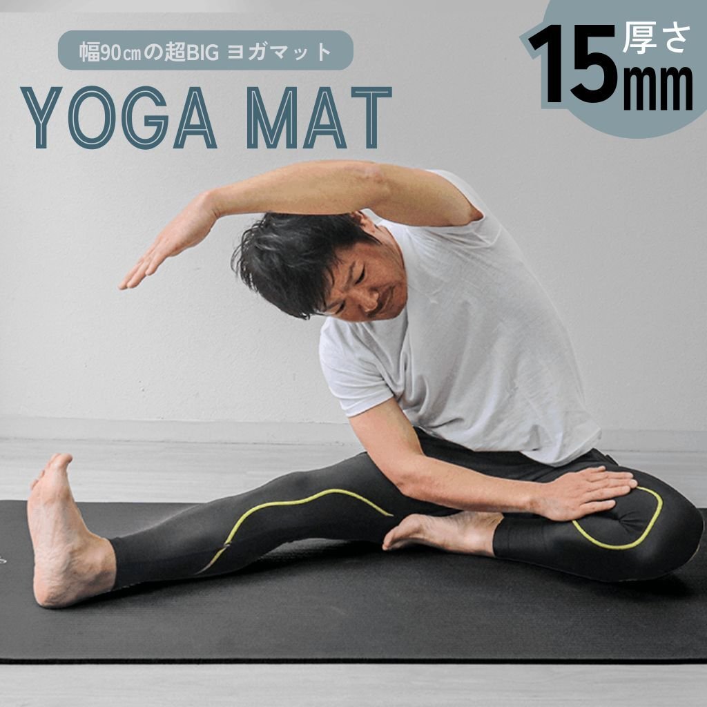 ヨガマット トレーニングマット ピラティスマット 15mm ブラック 190×90㎝ 幅広 大きめトレーニング ダイエット 新品 未使用