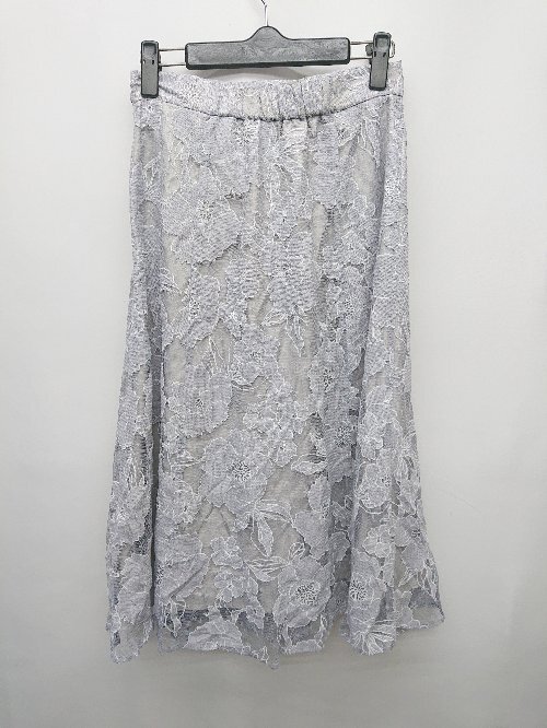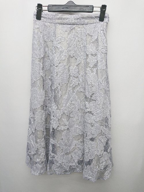 ◇ MISCH MASCH ミッシュマッシュ 総レース キレイめ 膝下丈 フレア スカート サイズM ライトグレー系 レディース P