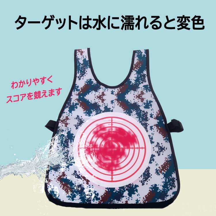 スコアターゲットが描かれたベストを着用して水鉄砲で打ち合いをすると楽しさ倍増!