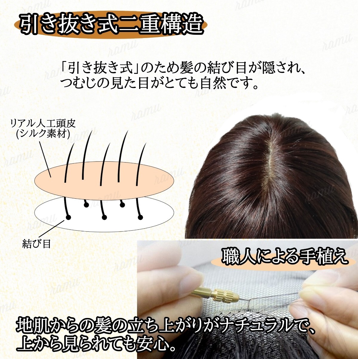 職人により丁寧に総手植えされており、人工頭皮付きなので分け目がとても自然です!