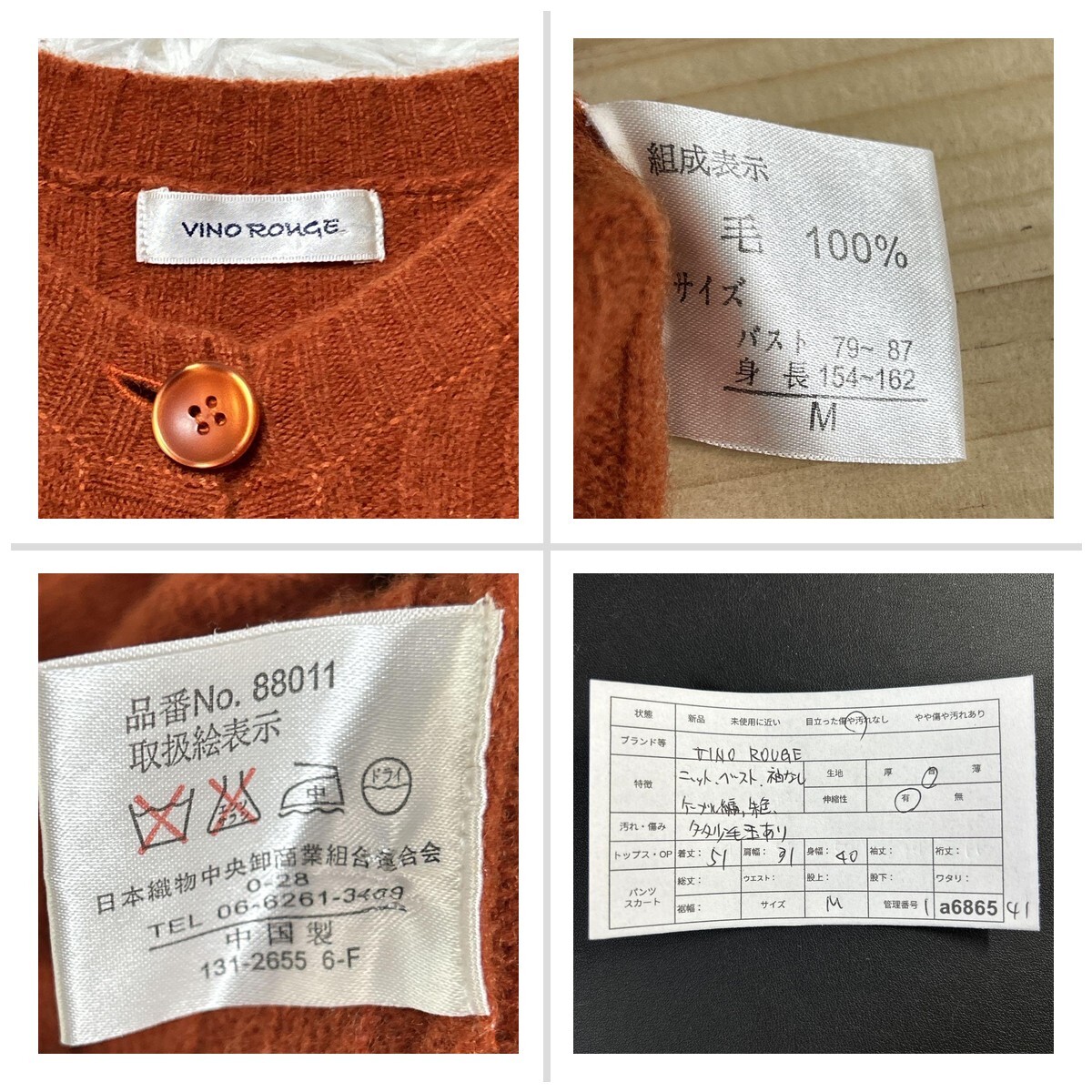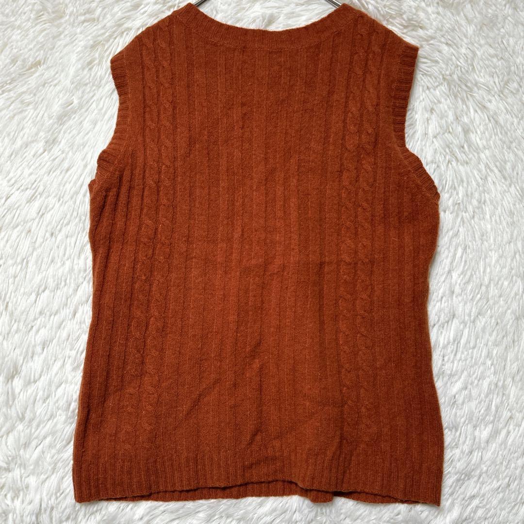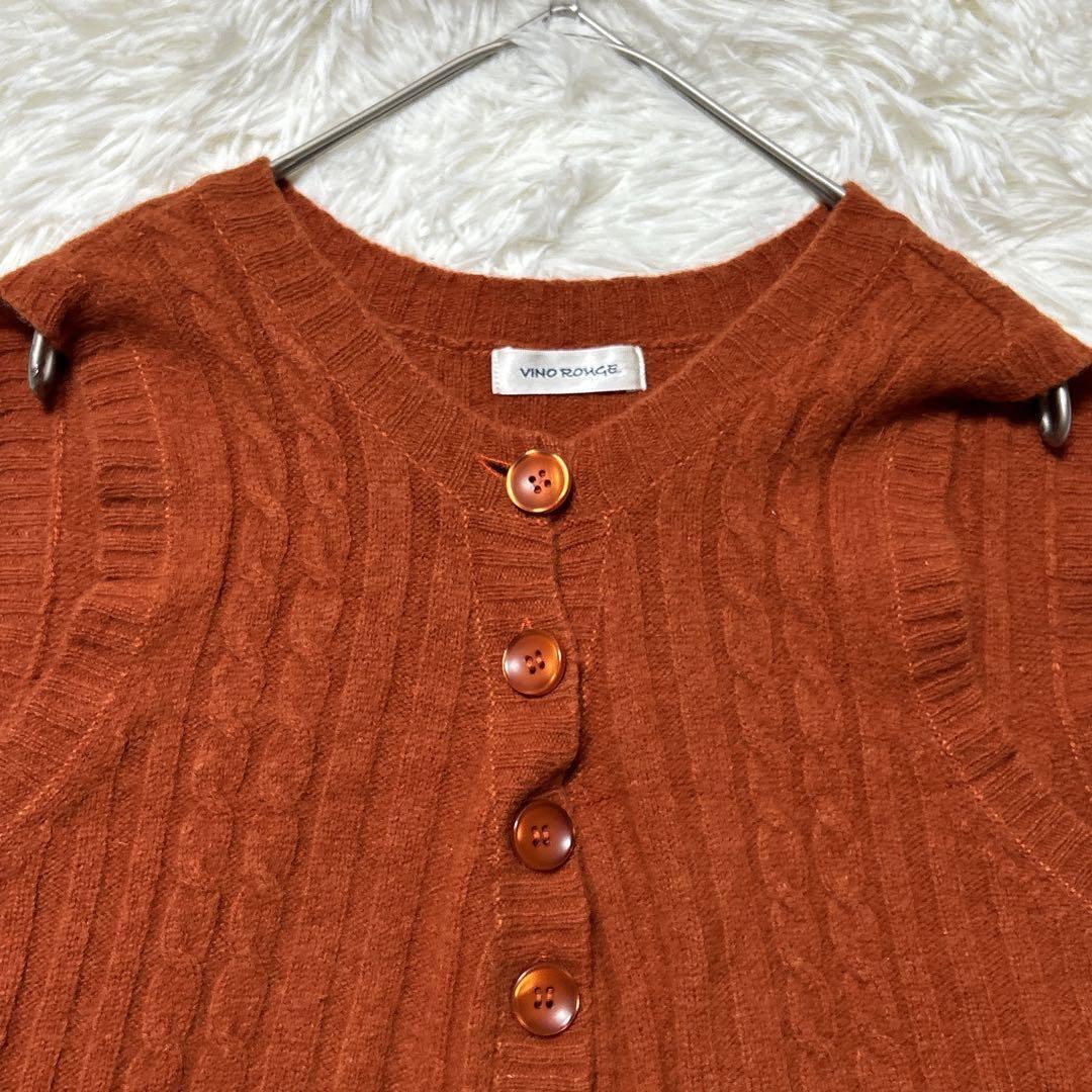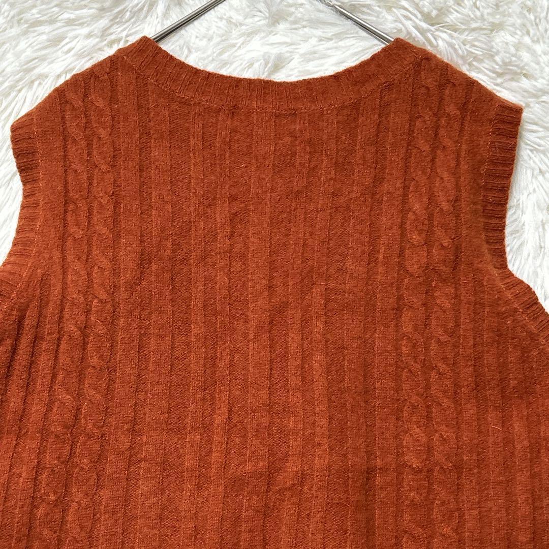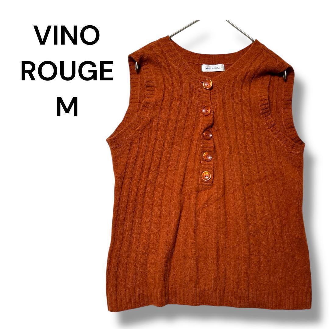 ヴィーノルージュ ニット ベスト M 袖なし 朱色 ケーブル編み 15D3CA